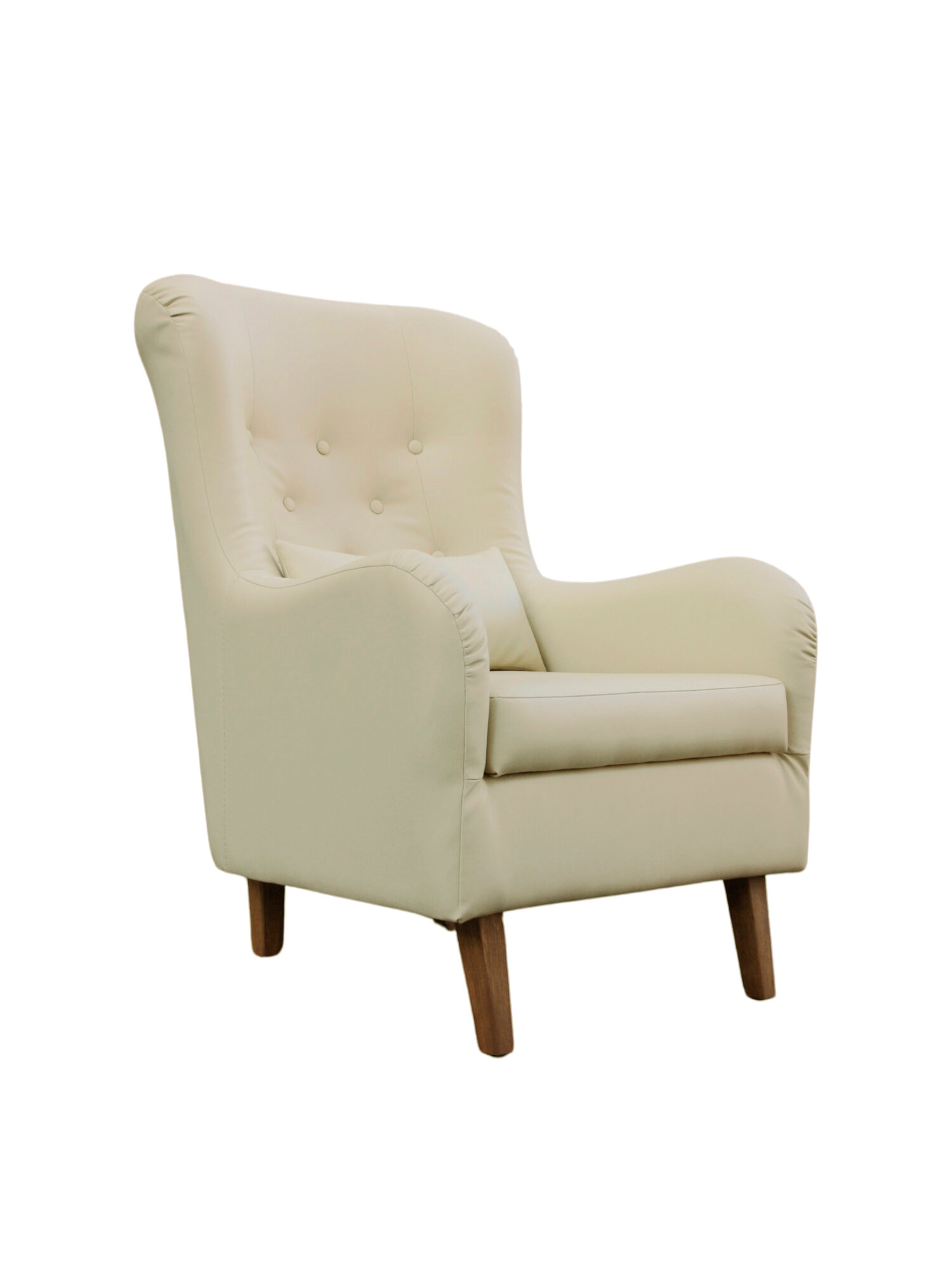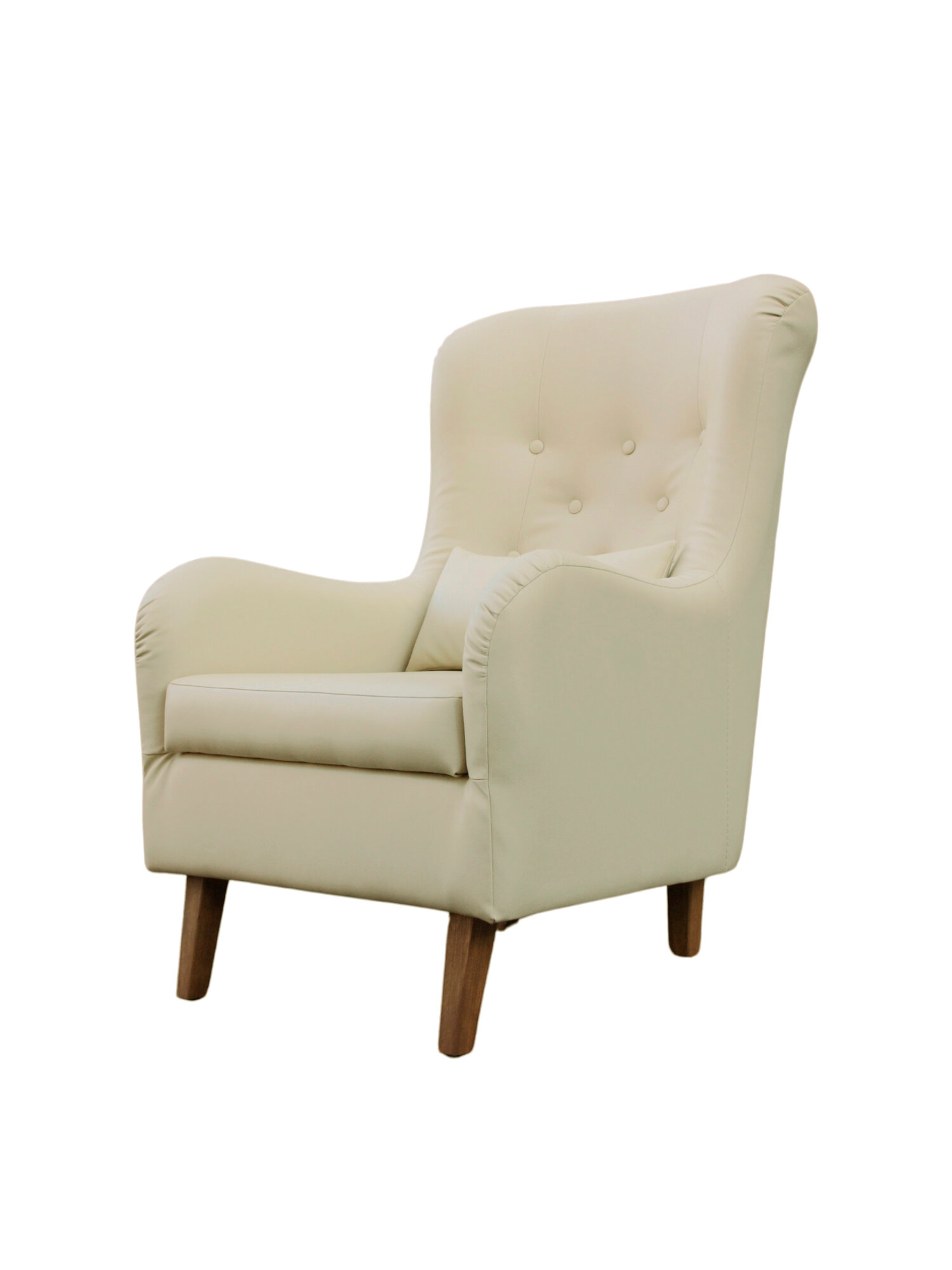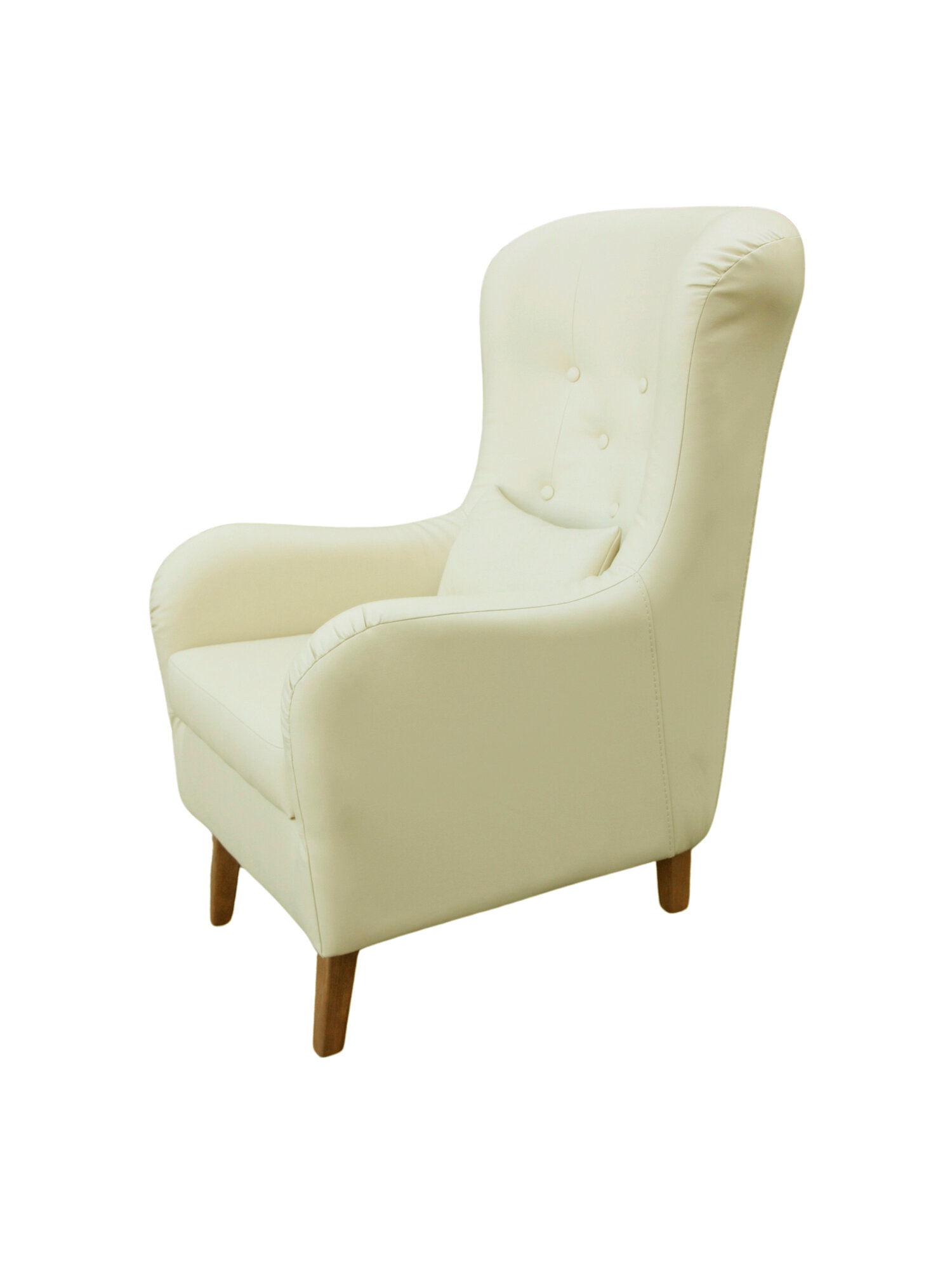 Купить Кресло мягкое Нео Кантри экокожа айвори на деревянных ножках с высокой спинкой светло-бежевого цвета с доставкой по всей России.