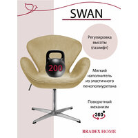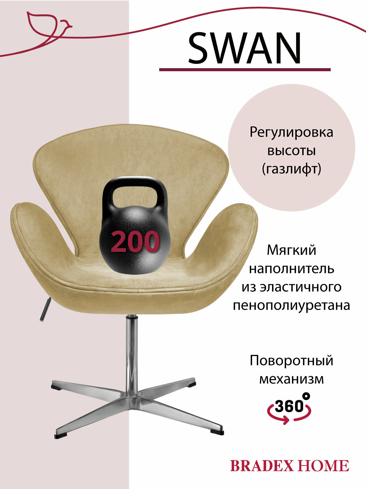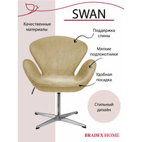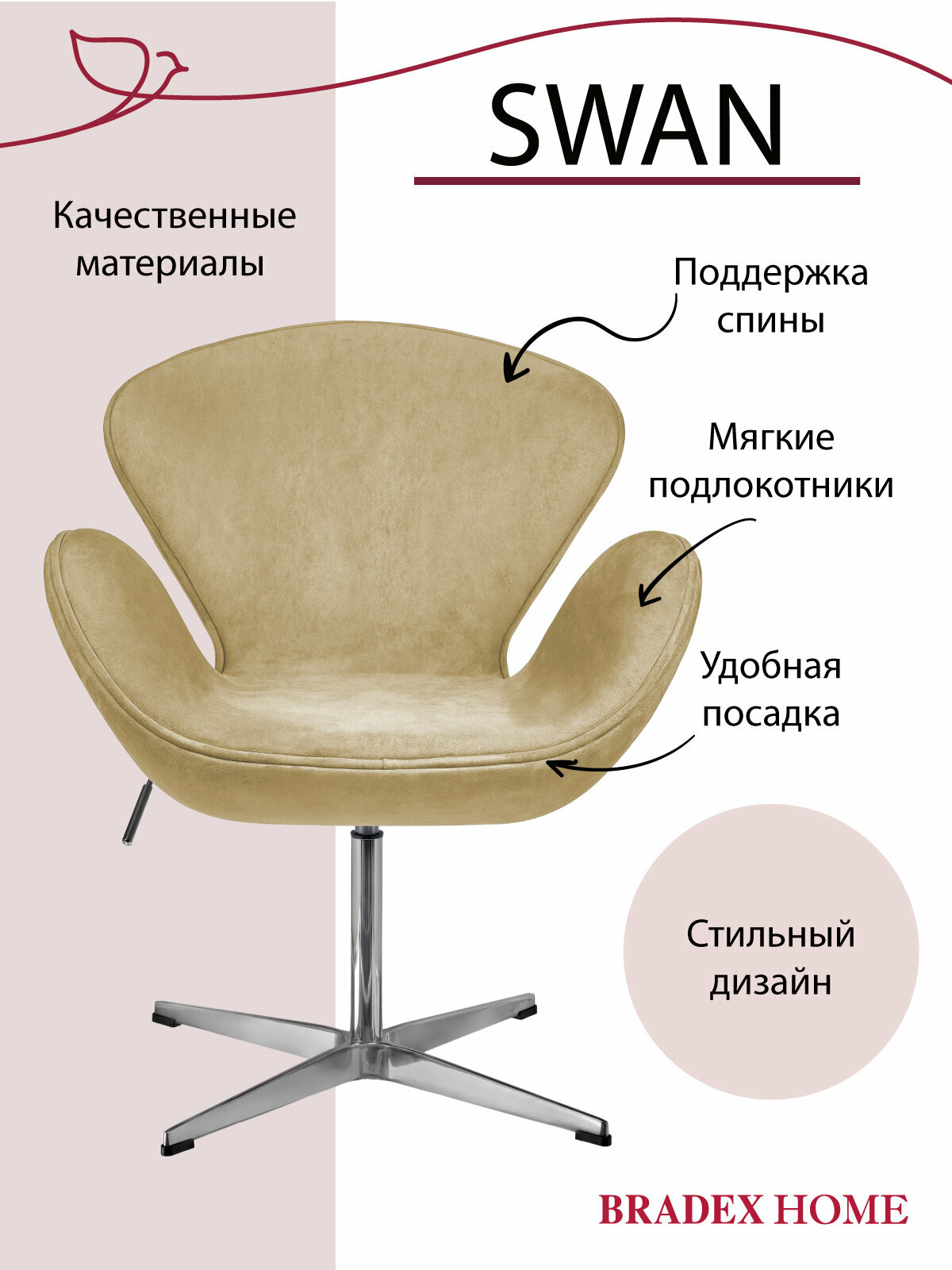 Мягкое кресло SWAN в бежевом цвете оттенок карамельный латте — это идеальное сочетание комфорта и стильного дизайна для вашего дома или офиса. Оно выполнено из высококачественной искусственной замши, что придаёт ему элегантный вид и делает кресло легким в уходе. Это кресло прекрасно впишется в любой интерьер, будь то современный лофт или классический стиль, добавляя атмосферу уюта и выполненной эстетики. Мебель для дома BRADEX Home – это оригинальный и стильный подарок мужчине, женщине, маме, папе, девушке, парню, подруге на день рождения, новоселье или праздник.