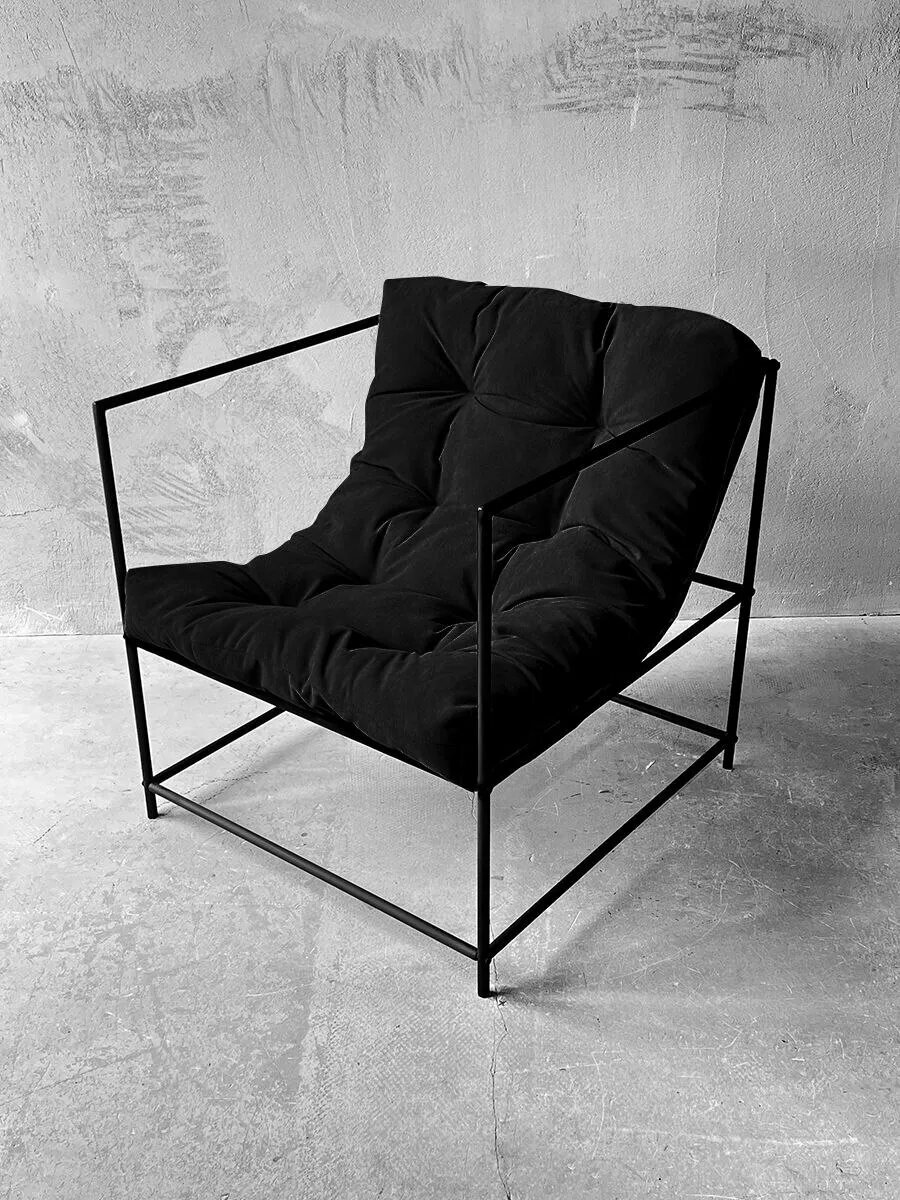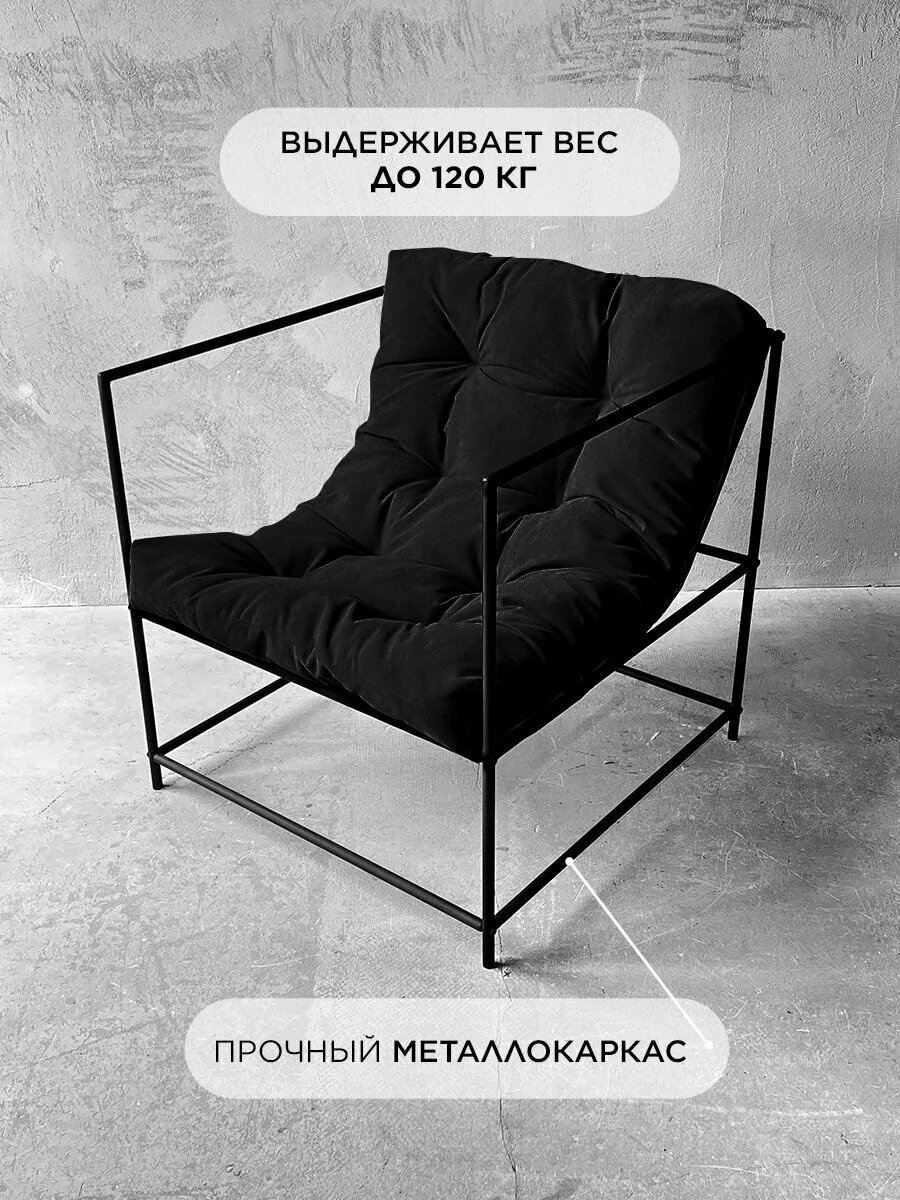 Купить Кресло мягкое удобное для отдыха, уличное, на балкон, на веранду, в стиле лофт, минимализм, Флафф юнит велюр черный с доставкой по всей России.
