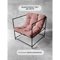 Купить Кресло мягкое удобное для отдыха, уличное, на балкон, на веранду, в стиле лофт, минимализм, Флафф юнит велюр розовый с доставкой по всей России.