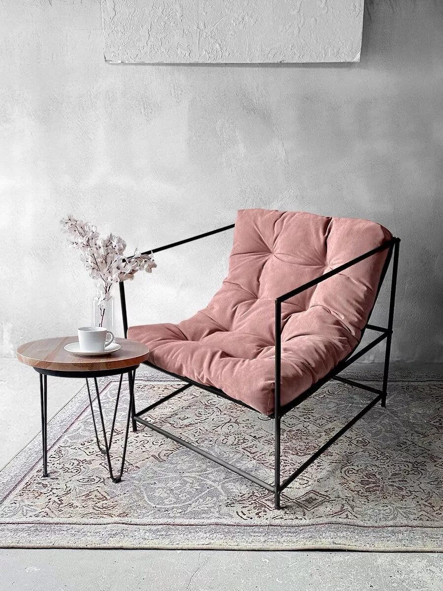 Кресло мягкое удобное для отдыха, уличное, на балкон, на веранду, в стиле лофт, минимализм, Флафф юнит велюр розовый: сравнение цен, характеристики, фото, актуальное наличие и цены.