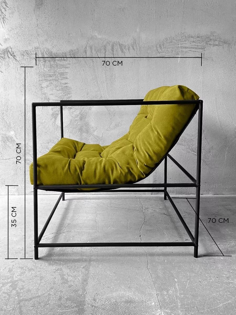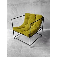Купить Кресло мягкое удобное для отдыха, уличное, на балкон, на веранду, в стиле лофт, минимализм, Флафф юнит велюр желтый с доставкой по всей России.