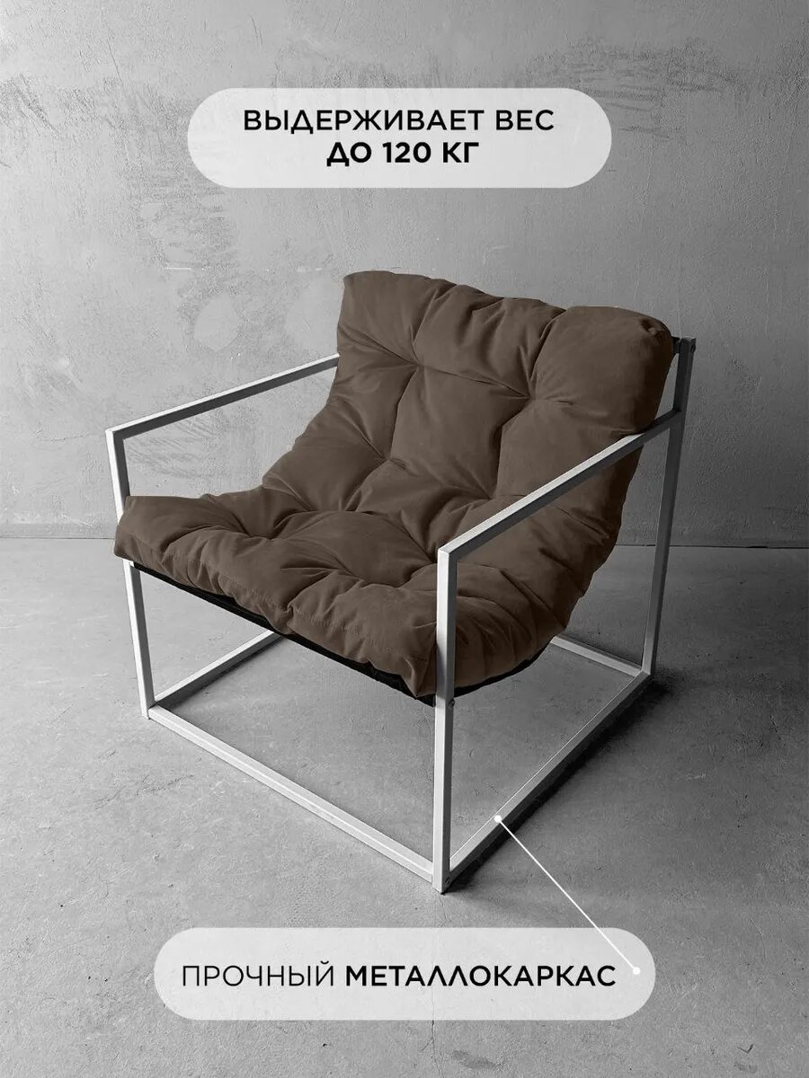 Кресло мягкое удобное для отдыха, уличное, на балкон, на веранду, в стиле лофт, минимализм, Комфи + велюр коричневый: сравнение цен, характеристики, фото, актуальное наличие и цены.