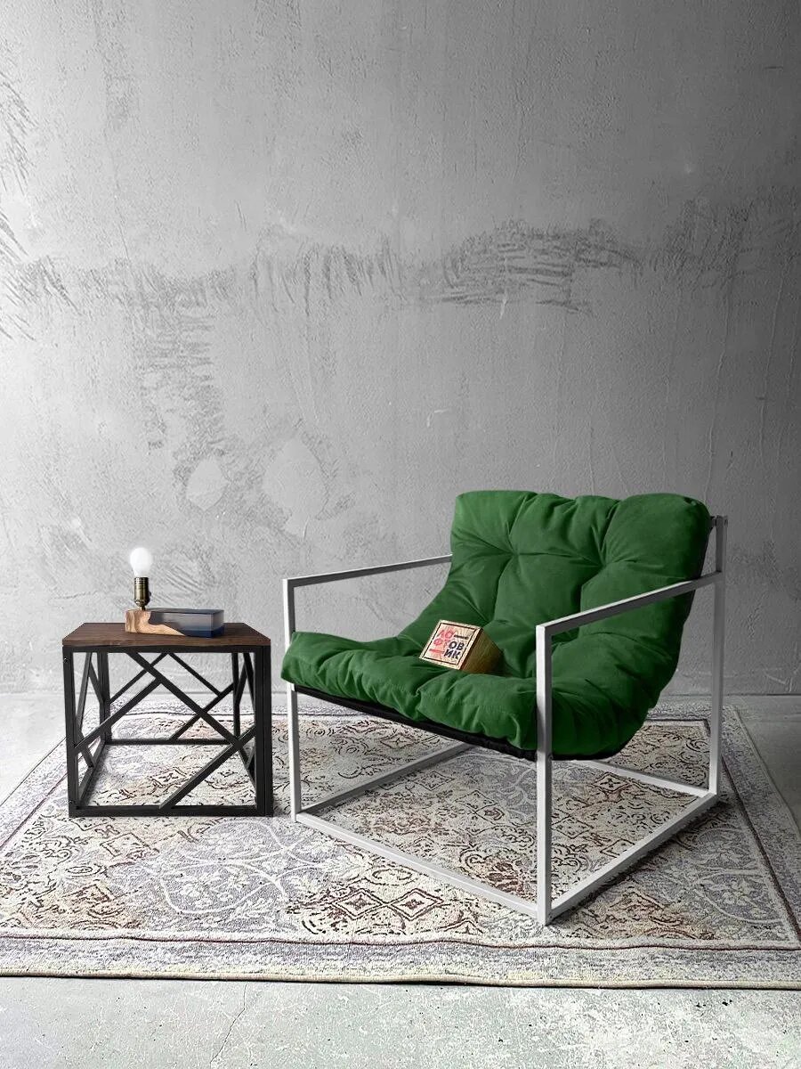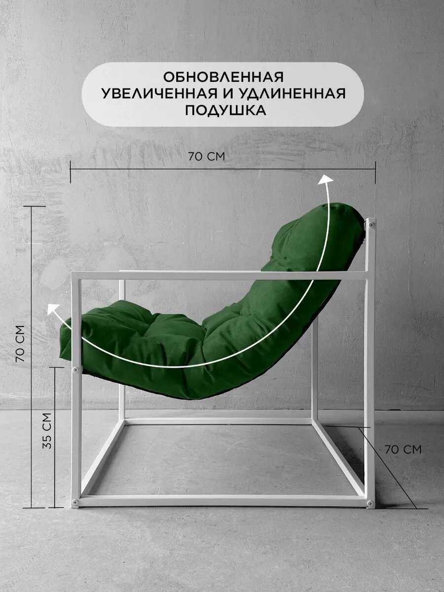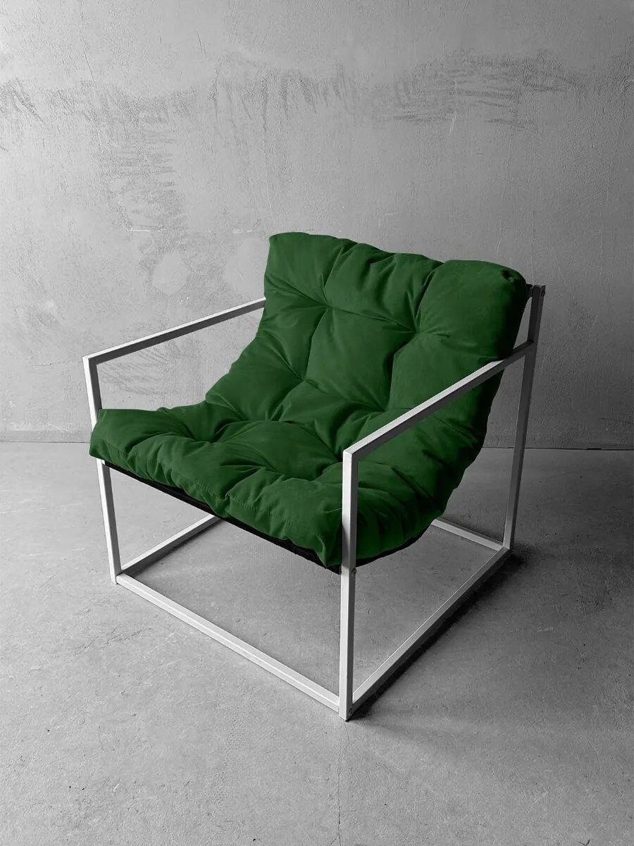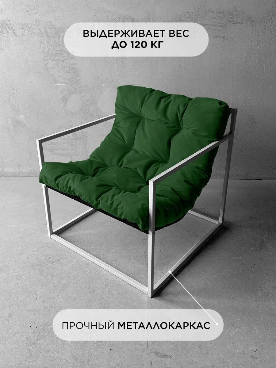 Купить Кресло мягкое удобное для отдыха, уличное, на балкон, на веранду, в стиле лофт, минимализм, Комфи + велюр зеленый с доставкой по всей России.