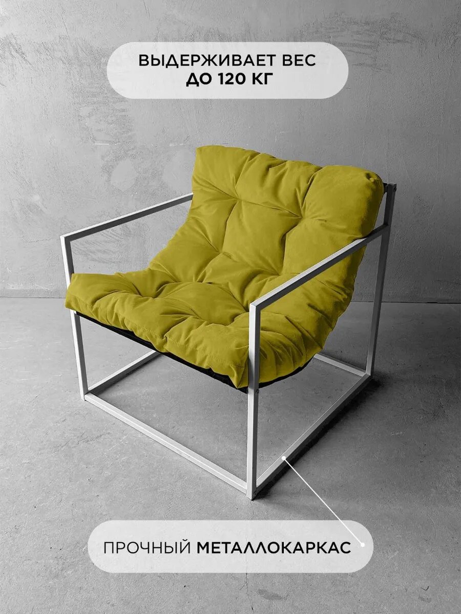 Кресло мягкое удобное для отдыха, уличное, на балкон, на веранду, в стиле лофт, минимализм, Комфи + велюр желтый: сравнение цен, характеристики, фото, актуальное наличие и цены.