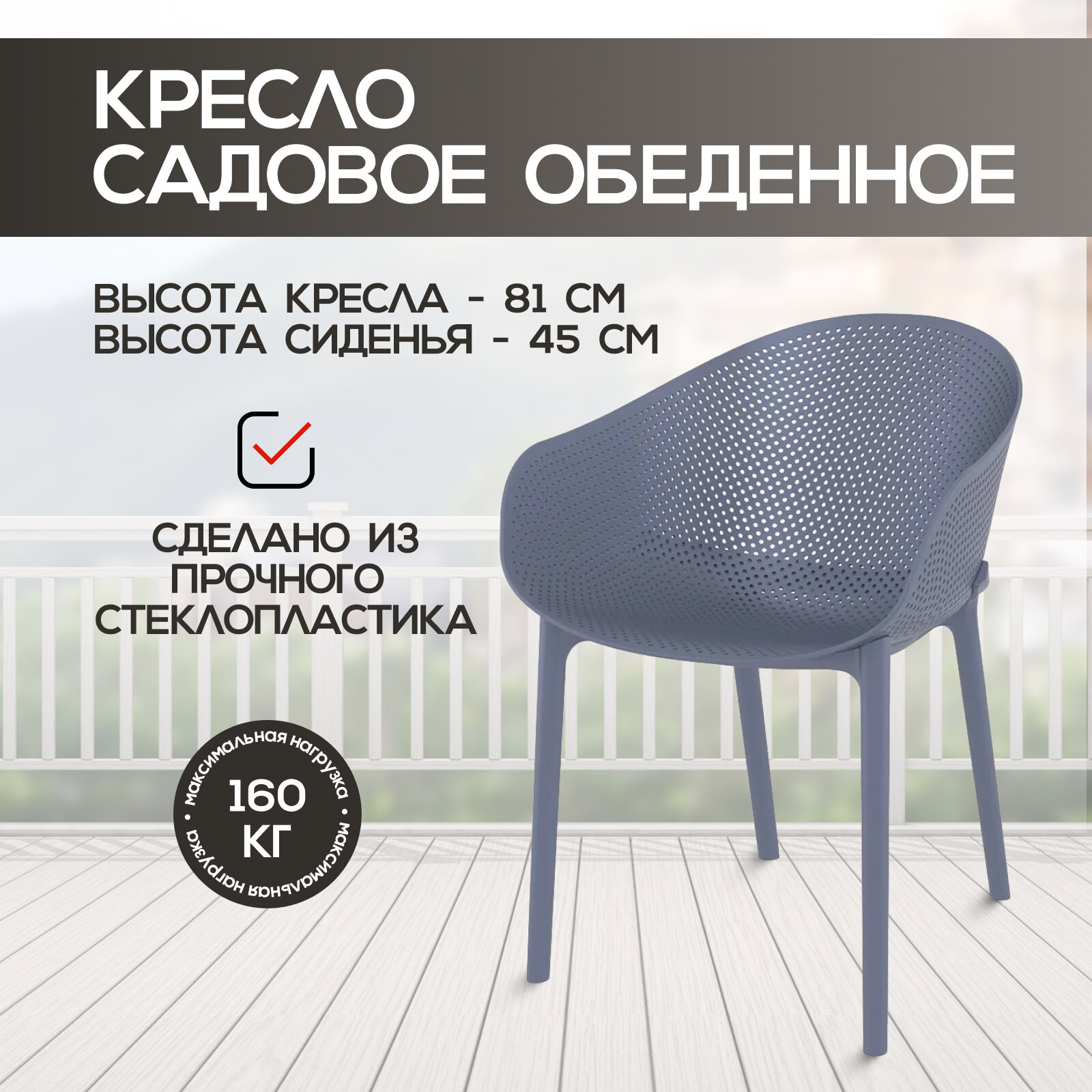 Садовое кресло уличное Sky Siesta, пластиковое, для дачи и лоджии, Турция, цвет темно-серый: сравнение цен, характеристики, фото, актуальное наличие и цены.