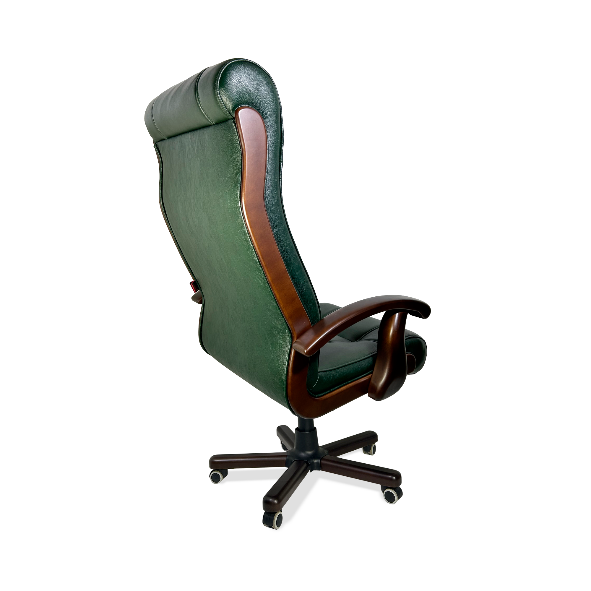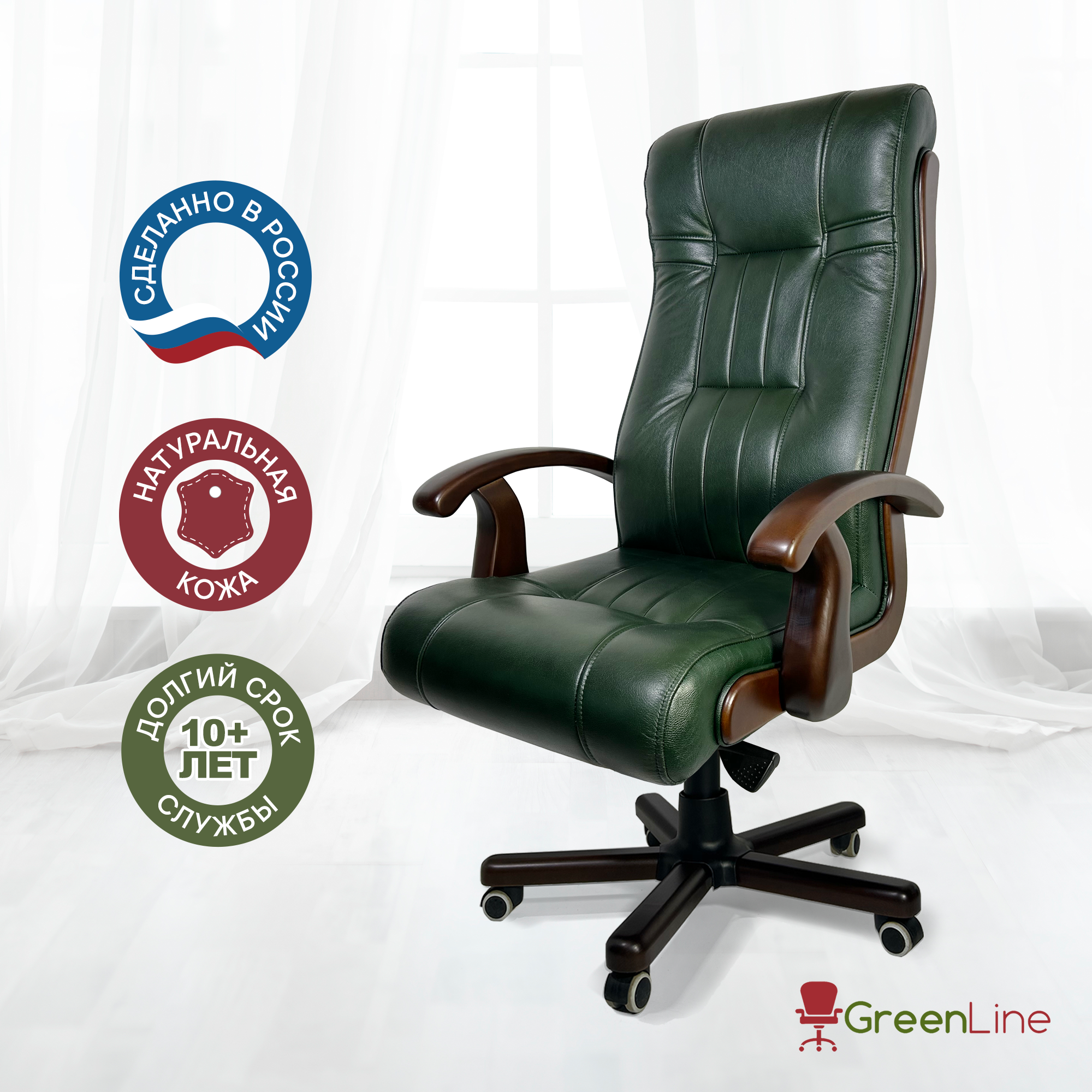 Купить Офисное кресло руководителя компьютерное Венген, кожаное, дерево, темно-зеленое (Pino kelato) с доставкой по всей России.