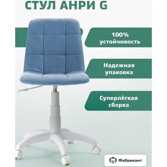 Кресло компьютерное офисное Фабрикант анри G велюр васильковый, белый пластик: сравнение цен, характеристики, фото, актуальное наличие и цены.
