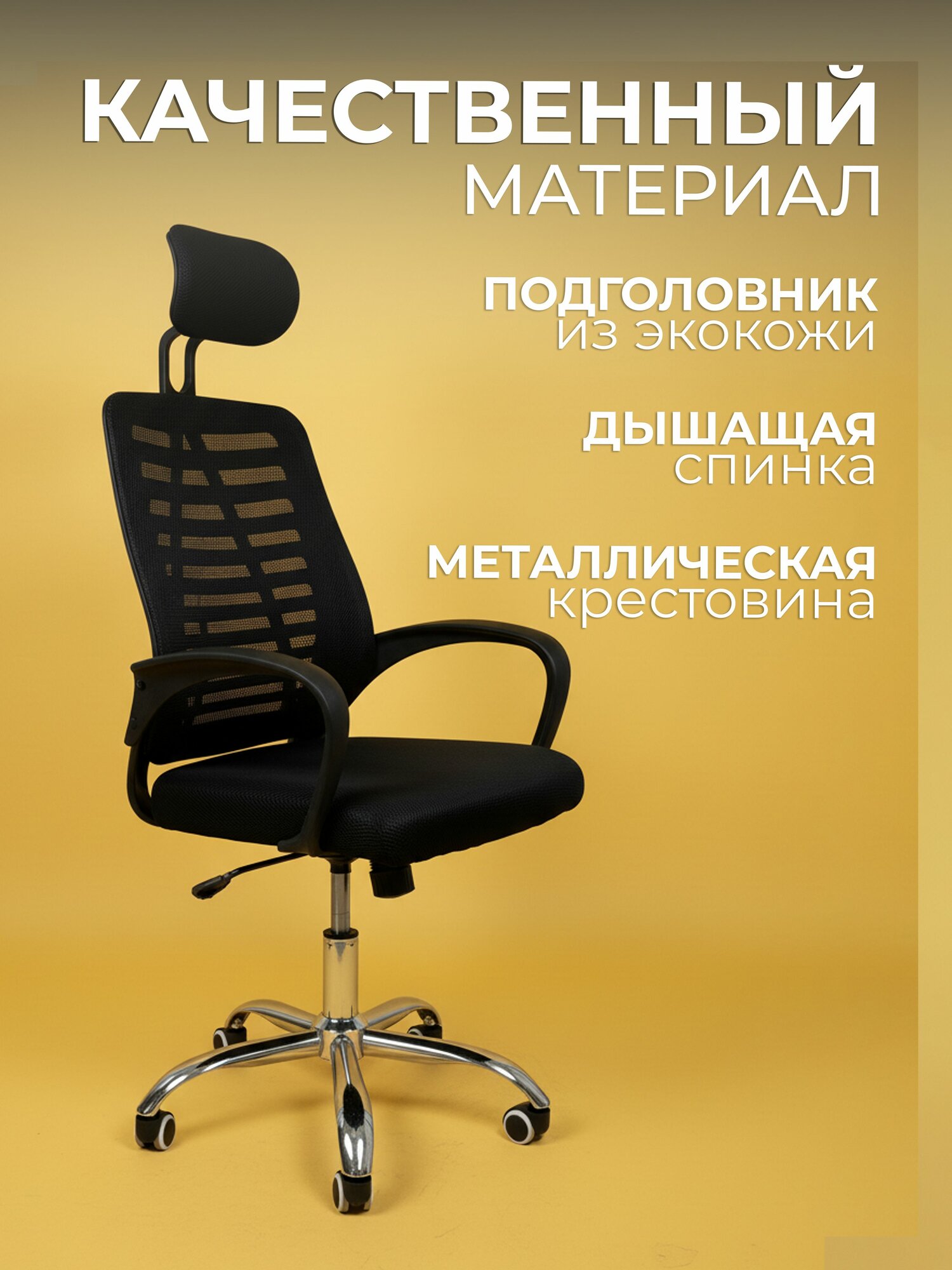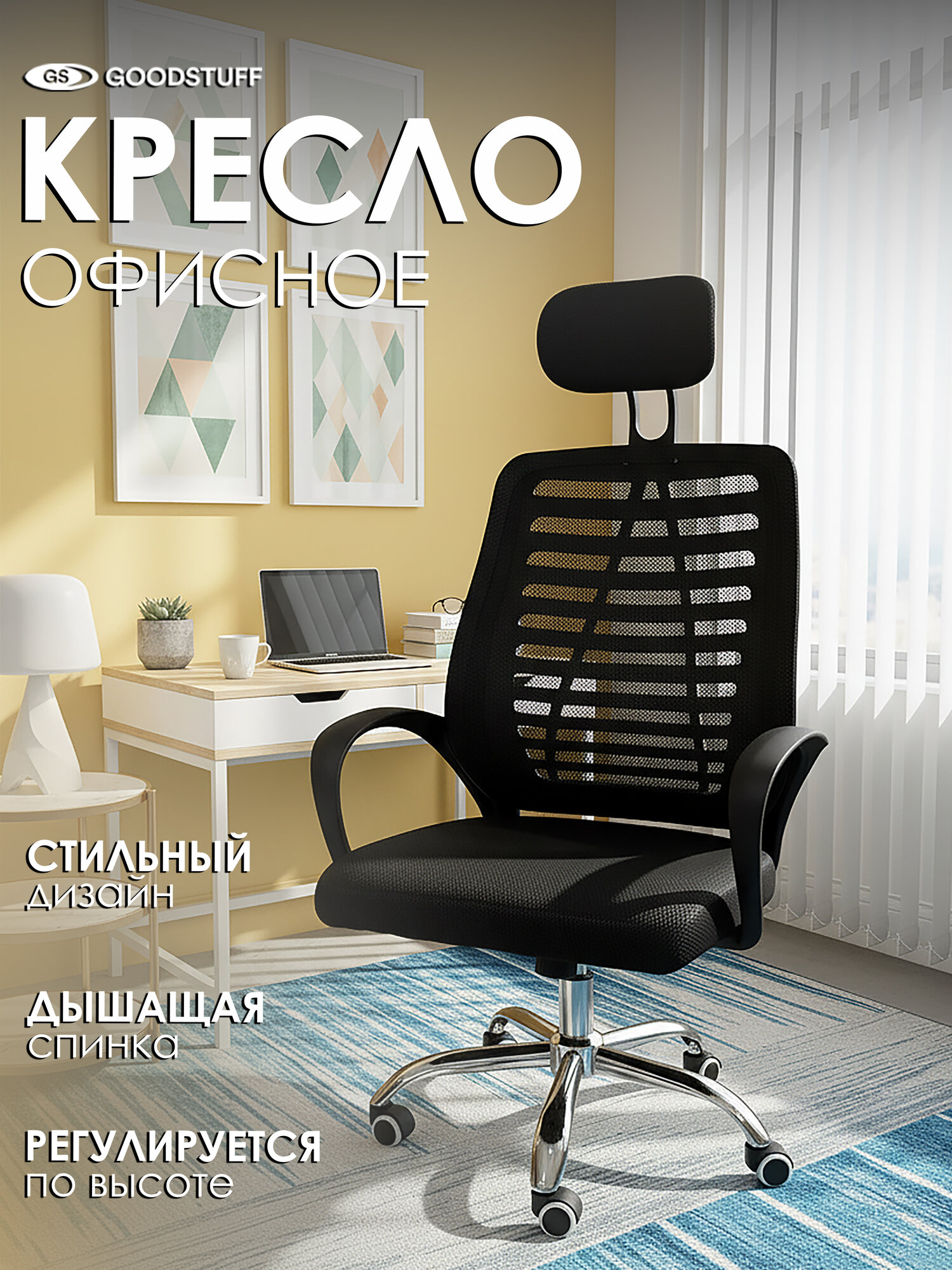 Кресло компьютерное офисное GOODSTUFF, черное, с подголовником