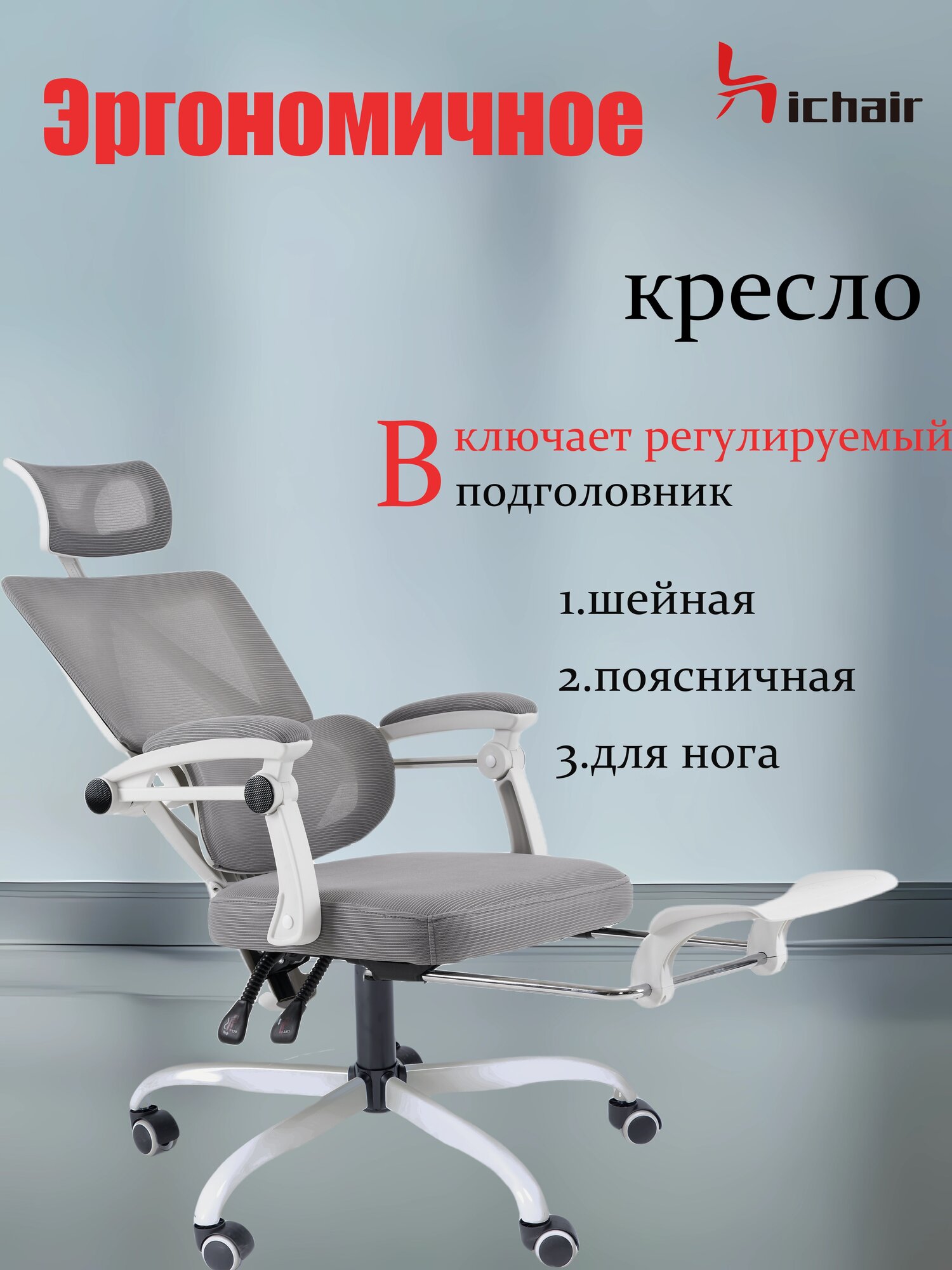 | Конструктивные особенности | с газлифтом, с колесами (роликами), с подголовником, с подлокотниками, с подставкой для ног, с поясничным упором |