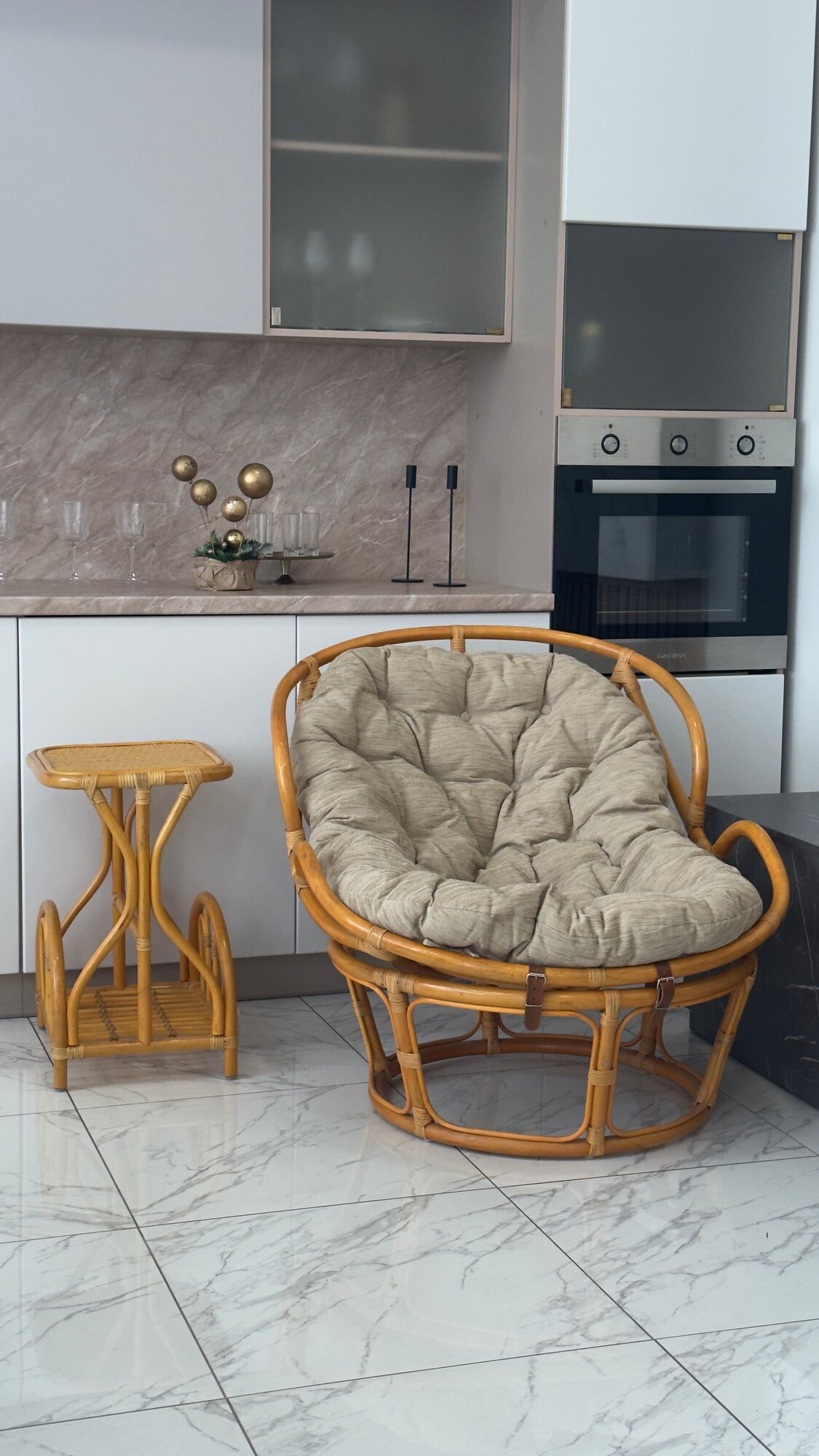 Кресло садовое KALYMERA "МАЛЕ", папасан, искусственный ротанг, подушка бежевая, 96х110х65см