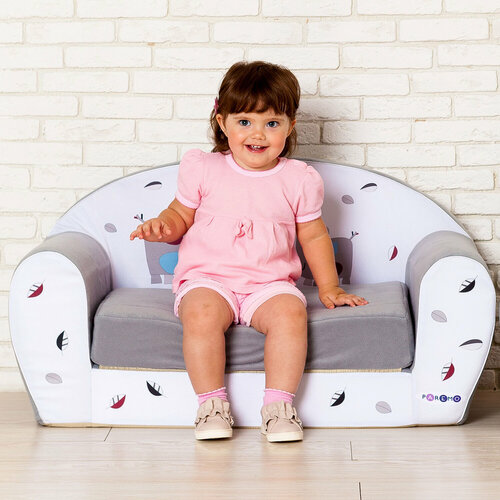 высота от пола до сидения: 18 см, размеры сидения: 28 х 26 см; возраст ребенка 1-4 года; материал съёмного чехла: велюр, текстиль (рекомендуется деликатная стирка при температуре не больше 30 С)