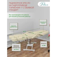 · Гидравлическое педикюрное кресло кушетка Гармония 1 с обивкой Стандарт, необходимое оборудование для мастера аппаратного педикюра и является основным оснащением салонов красоты, парикмахерских и педикюрных кабинетов. · Кресло для педикюра Гармония 1 Стандарт оборудовано гидравлическим подъемником, с помощью которого осуществляется подъем и опускание на высоту 16 см (от 66 до 825 см от уровня пола).