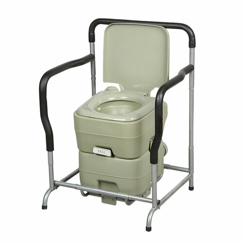 Кресло позволяет использовать обычный биотуалет для дома и дачи как компактный туалет для пожилых и инвалидов с высокой спинкой и поручнями. Может быть удобен для детей и беременных. Кресло сделано из гнутых металлических труб, состоит из пары подлокотников, нижней подставки и спинки. Трубки прочные, покрашены, ручки и спинка покрыты эластичной резиной - вспененный каучук, не скользят в руках, приятны на ощупь. Поставляется в собранном, готовом к эксплуатации виде. При необходимости легко собирается и разбирается, например, для хранения. Подставка имеет выступы для крепления биотуалетов типа Толик-10 и Толик-20 и им аналогичных. Эти устройства имеют соответствующие выемки в днище, что обеспечивает исключительно надёжное крепление. Однако, такое крепление не является универсальным, предлагаемое Вам кресло для ряда моделей туалетов может не подойти.