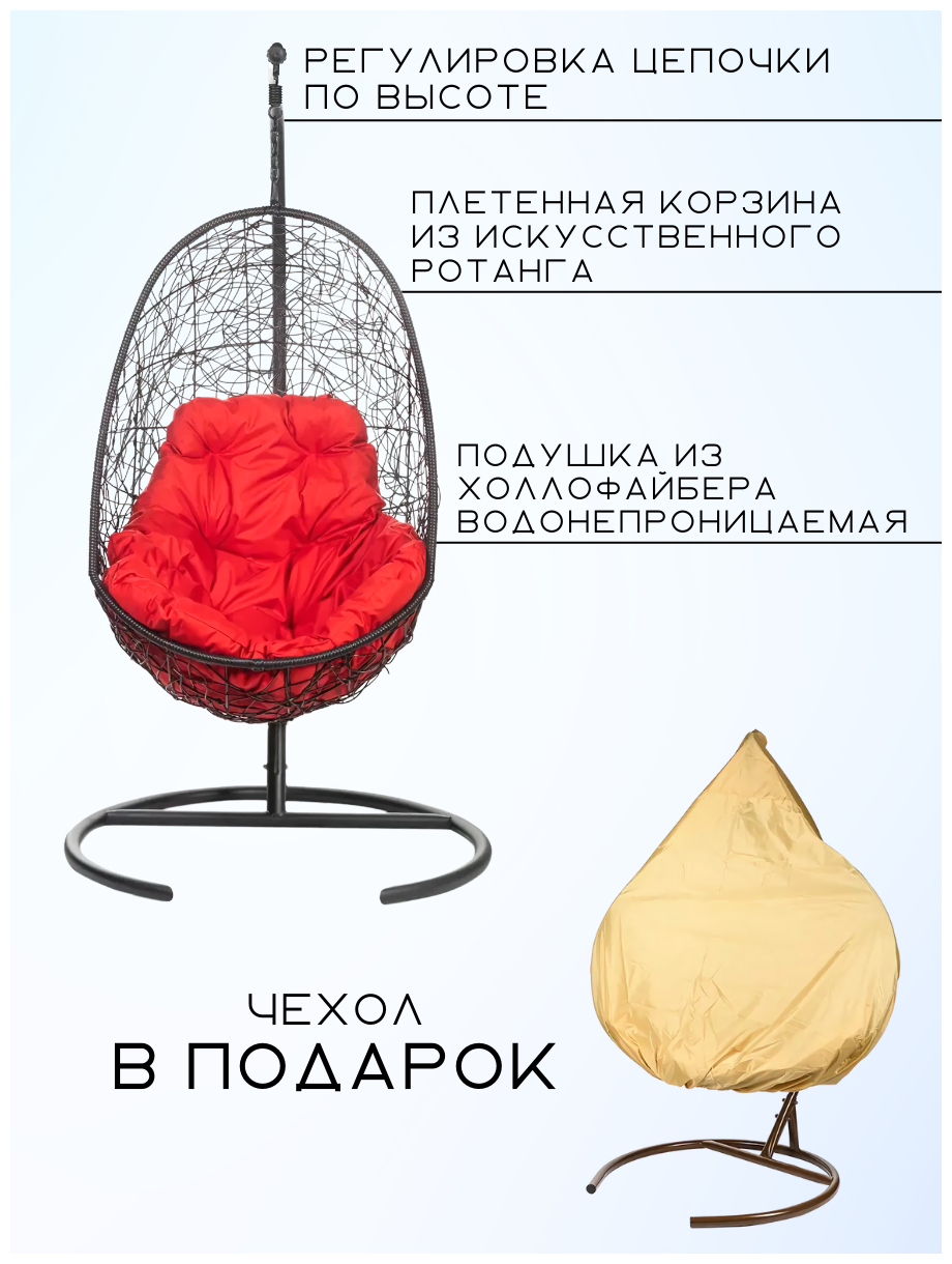Кресло подвесное Bigarden «Easy», черное, со стойкой, красная подушка (чехол в подарок): сравнение цен, характеристики, фото, актуальное наличие и цены.