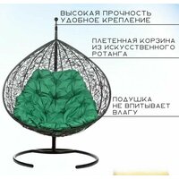 Подвесное кресло кокон на стойке двухместное»Джемини» (Gemini) чёрное, зеленая подушка, 135х75х195 см до 180 кг.: сравнение цен, характеристики, фото, актуальное наличие и цены.
