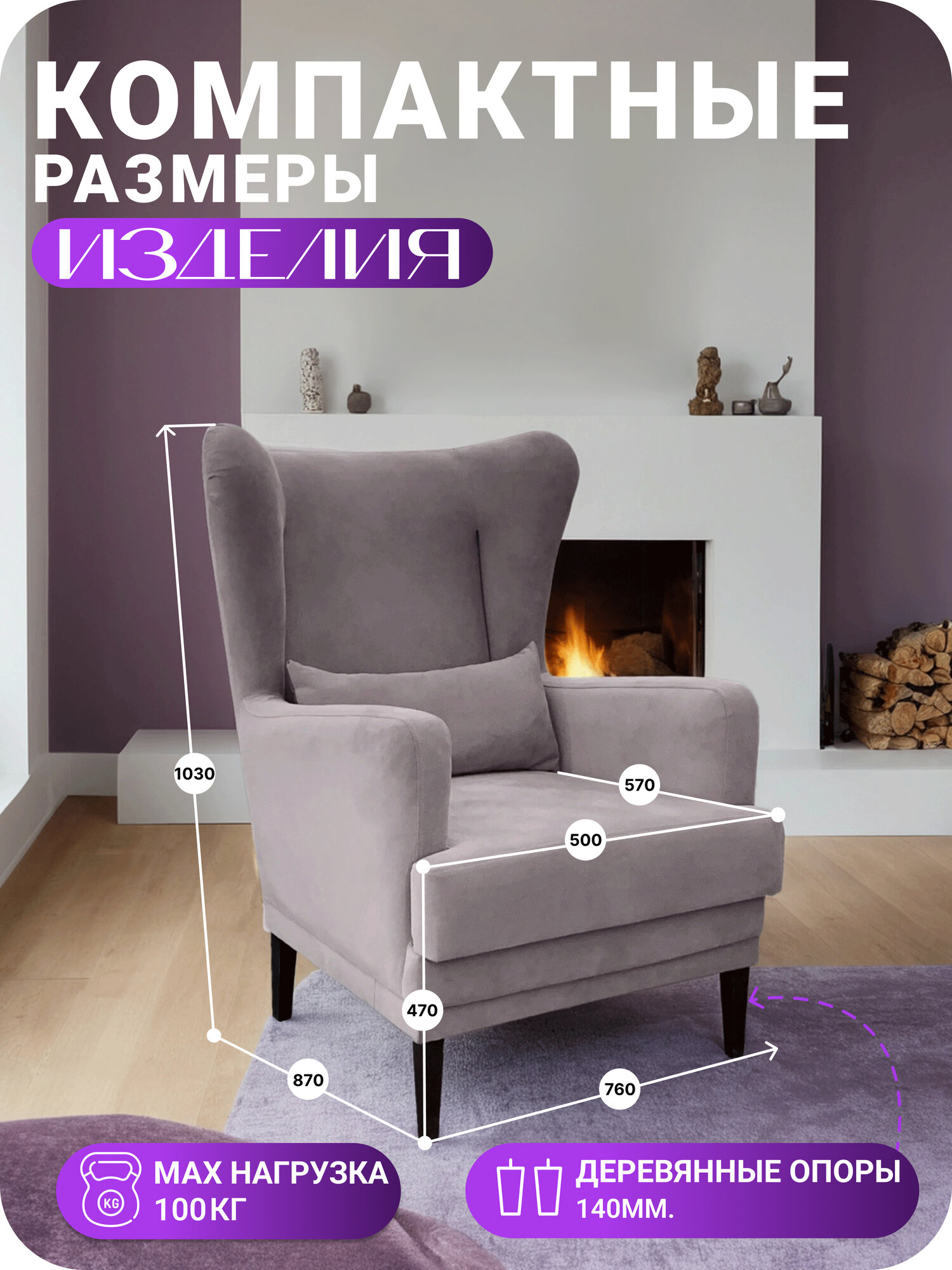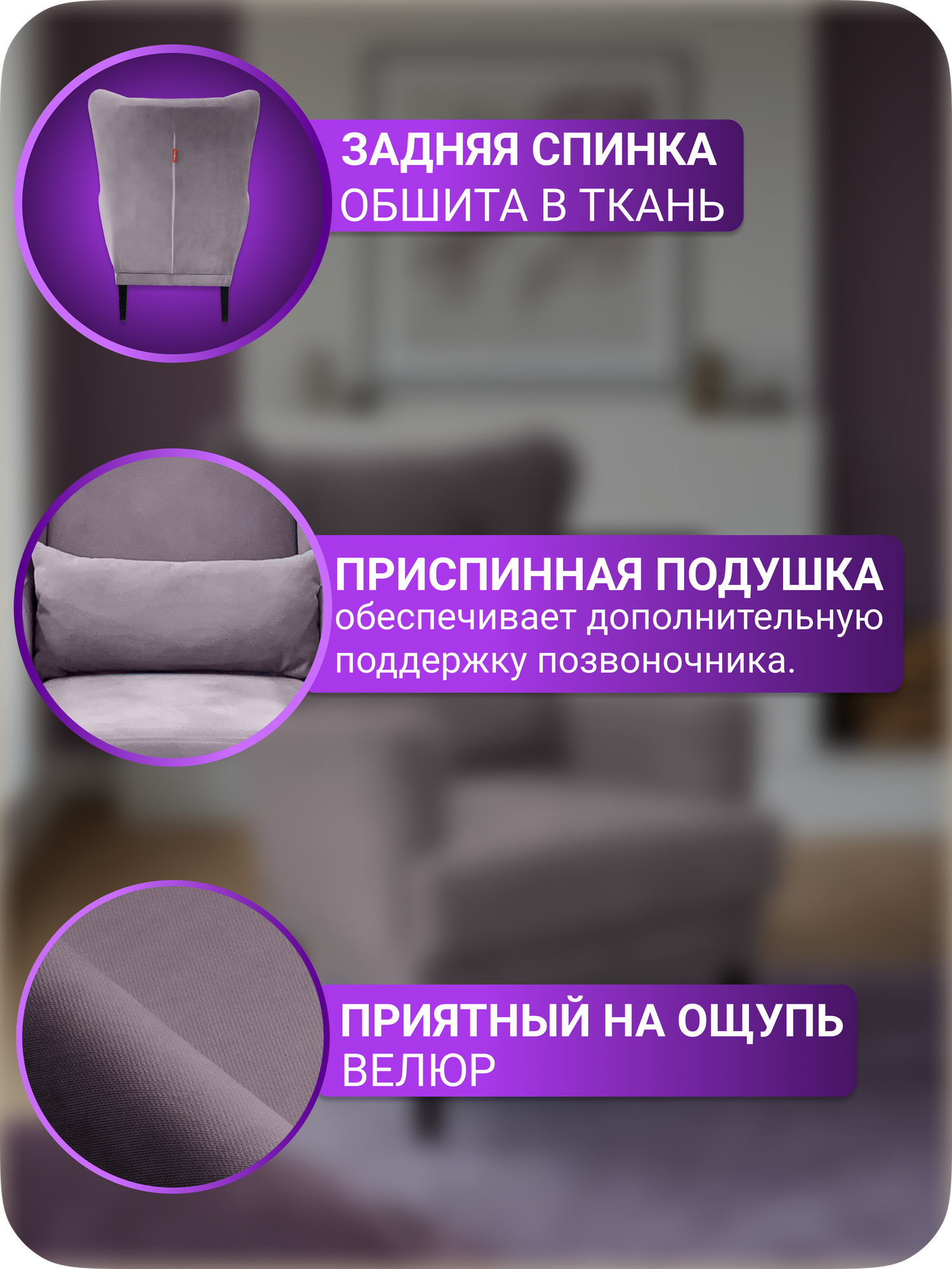 Кресло с подлокотниками, кресло современное, кресло классическое, кресло в современном стиле, кресло в гостиную в современном стиле, современные кресла для гостиной, современные мягкие кресла, кресло лофт, кресло лофт мягкое, лиловое