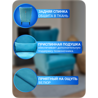 Красивое и удобное кресло в стиле начала 20-го века. Высокая спинка, округлые формы и сбалансированная глубина позволят проводить в кресле длительное время без какого-либо дискомфорта. Декоративную подушку можно использовать для поясницы. Материалы кресла — березовая фанера, дуб и велюр — делают его не только экологически безопасным, но и долговечным.