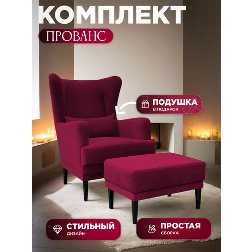 Комплект «Прованс» – это кресло с пуфом в едином стиле, идеально подходящее для создания уютной зоны отдыха. Модель сочетает в себе черты кресла классического и кресла современного, поэтому легко вписывается как в традиционные, так и в актуальные интерьеры.