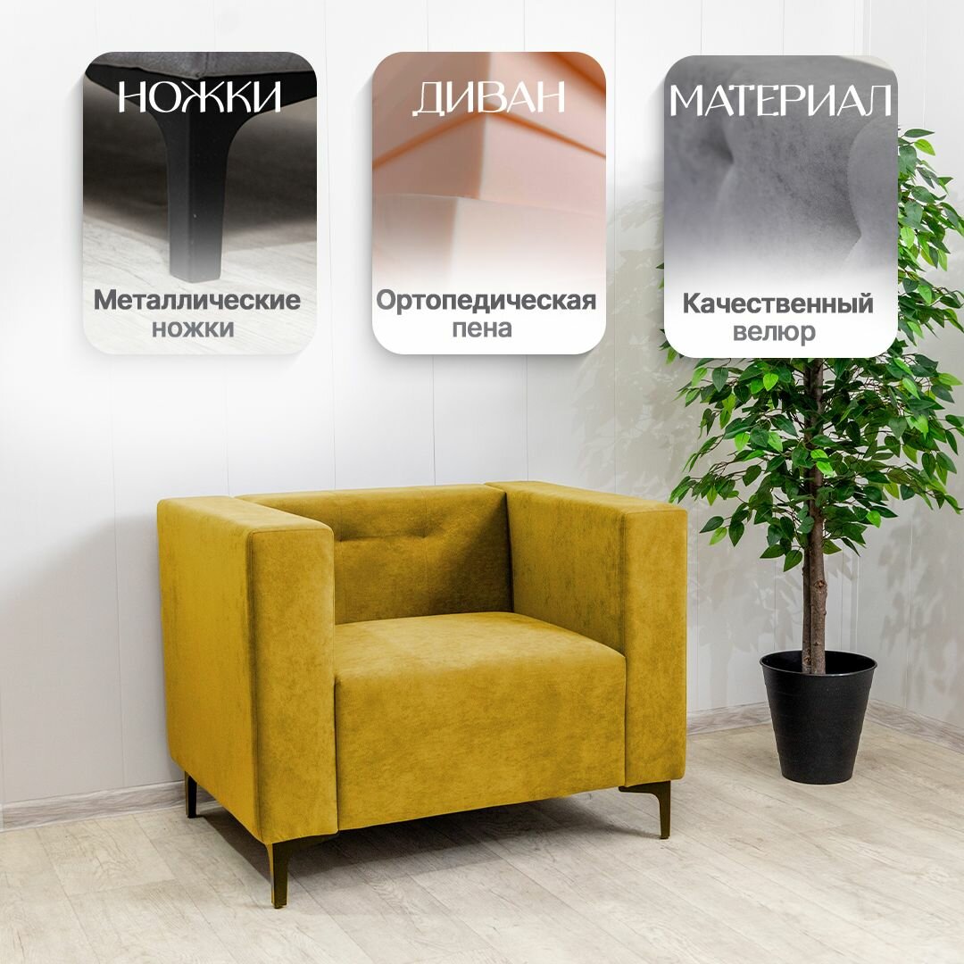 Кресло прямое мягкое Квадро, велюр горчичный, в кухню, гостиную или офис, 90x70x70 см: сравнение цен, характеристики, фото, актуальное наличие и цены.
