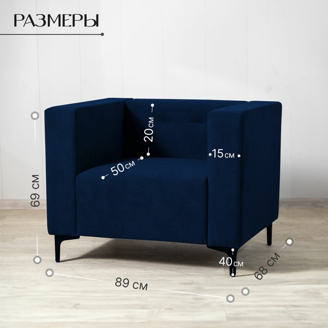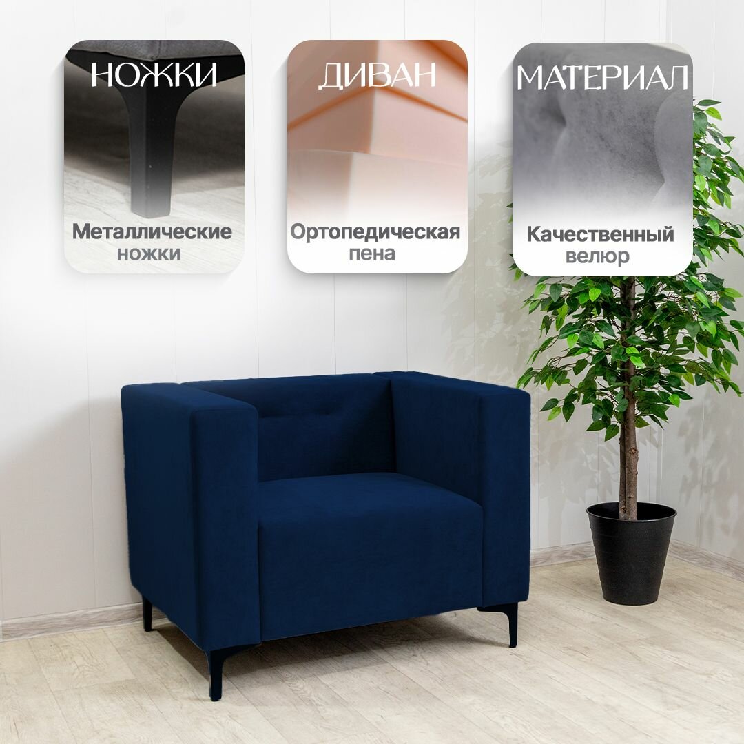Купить Кресло прямое мягкое Квадро, велюр синий, в кухню, гостиную или офис, 90x70x70 см с доставкой по всей России.