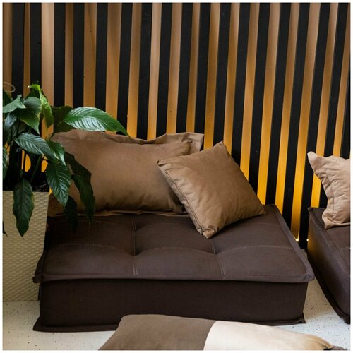 1. Не занимает много места. Идеально подходит для небольших помещений. 2. Легко переносить из комнаты в комнату, перевозить (не тяжелый). 3. В Комплект входит: Модуль малый 80х100х23 см – 1 шт. Подушка большая 50х70 см – 1 шт. Подушка малая 45х45 см – 1 шт. 4. Высота модуля – 23 см. 5. Цвет модуля – коричневый, цвет подушек – карамельный. 6. Есть возможность приобрести диван-кровать по частям и собрать со временем весь комплект (смотри информацию «Модельный ряд»). 7. Материал обивки – велюр люкс, качественный мебельный велюр приятных оттенков. В индивидуальном порядке можем сделать любой цвет и размер. 8. Наполнение: эластичный пенополиуретан высокой плотности, упругий. Благодаря данному наполнению удобно и сидеть и лежать. 9. Модули соединяются между собой усиленной молнией, поэтому не разъезжаются во время эксплуатации в качестве дивана и кровати. 10. Первоклассное качество исполнения, эксклюзивный дизайн. Российский производитель. 11. Чехлы на подушках съемные. Чехлы на модулях не съемные. Велюр хорошо чистится как специальными средствами для мебели, так и губкой с мылом. 12. Цвет ткани может незначительно изменяться от партии к партии.