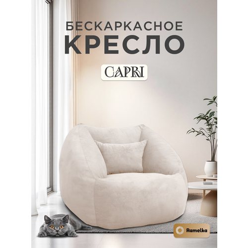 Купить Кресло-пуф бескаркасное Ramelka CAPRI, микровелюровый чехол, бежевый с доставкой по всей России. Кресло-пуф бескаркасное Ramelka CAPRI, микровелюровый чехол, бежевый: сравнение цен, характеристики, фото, актуальное наличие и цены.