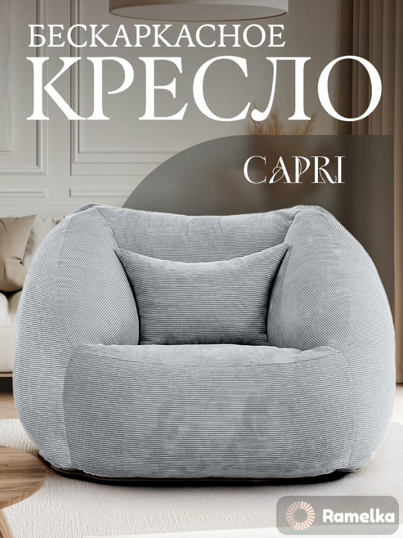 Бескаркасное кресло CAPRI — это идеальное решение для тех, кто ищет стильную и удобную мебель для своего интерьера. Если вы планируете обновить пространство в гостиной или создать уют в спальни или детской, кресло мешок станет замечательным дополнением.