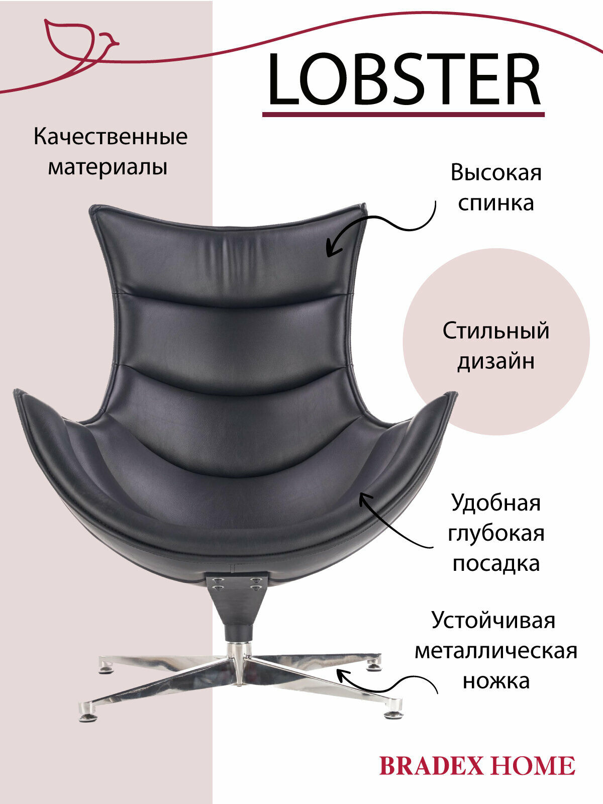 Кресло ракушка LOBSTER черное, мягкое для отдыха, взрослое крутящееся круглое на ножке, офисное для руководителя, интерьерное для дома в гостиную: сравнение цен, характеристики, фото, актуальное наличие и цены.