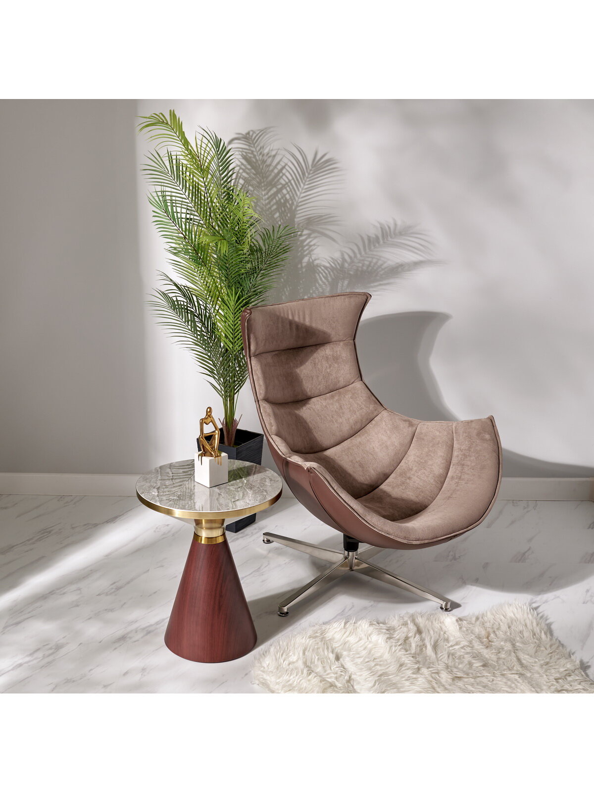 Купить Кресло ракушка LOBSTER латте с коричневым, мягкое для отдыха, взрослое крутящееся круглое на ножке, офисное для руководителя, интерьерное для дома в гостиную с доставкой по всей России.