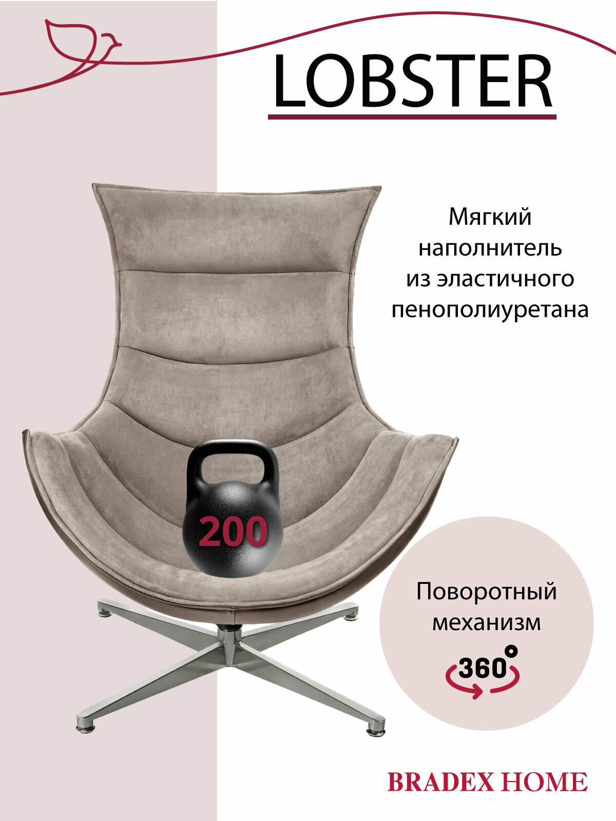 Кресло ракушка LOBSTER латте с коричневым, мягкое для отдыха, взрослое крутящееся круглое на ножке, офисное для руководителя, интерьерное для дома в гостиную: сравнение цен, характеристики, фото, актуальное наличие и цены.