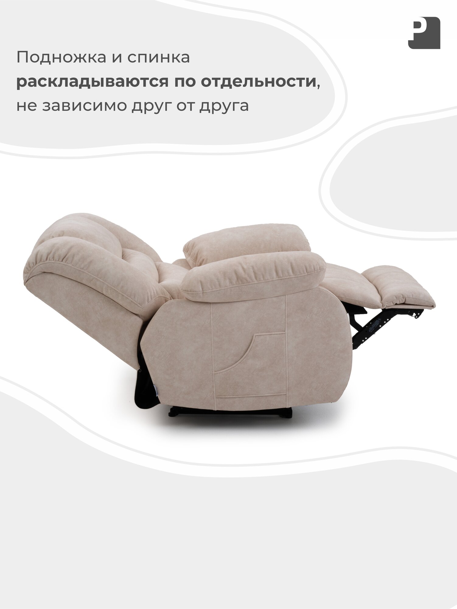 Кресло раскладное BONA, реклайнер электрический двухмоторный, велюр бежевый, Мебельное бюро PEREVALOV