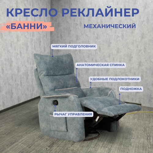 Кресло-реклайнер «Банни» механический, искусственный велюр «Nova 139»
