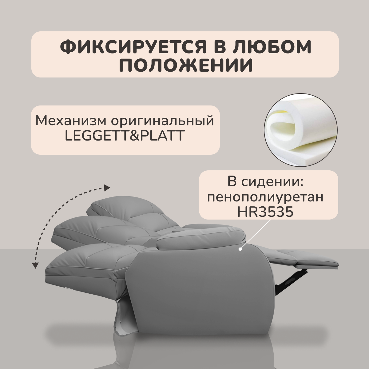 - ППУ HR3535, аэропух. Высокие показатели плотности и эластичности обеспечивают комфорт и долговечность обивочного материала.