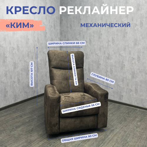 Кресло-реклайнер "Ким" механический, искусственный велюр "Nova 085"
