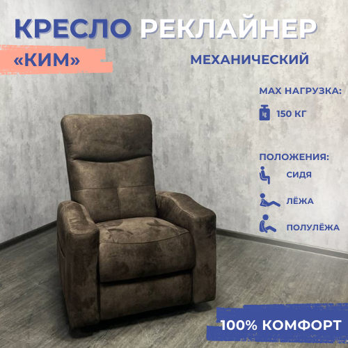 Купить Кресло-реклайнер «Ким» механический, искусственный велюр «Nova 085» с доставкой по всей России.