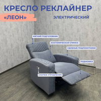 Кресло реклайнер "Леон", электрический, велюр "Novus 998"