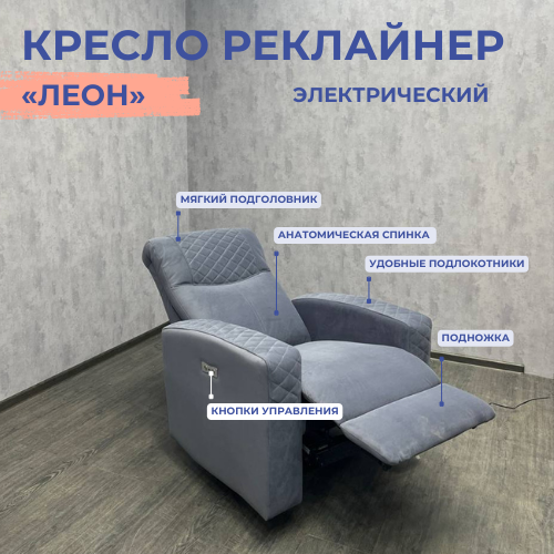 Кресло реклайнер «Леон», электрический, велюр «Novus 998»: сравнение цен, характеристики, фото, актуальное наличие и цены.