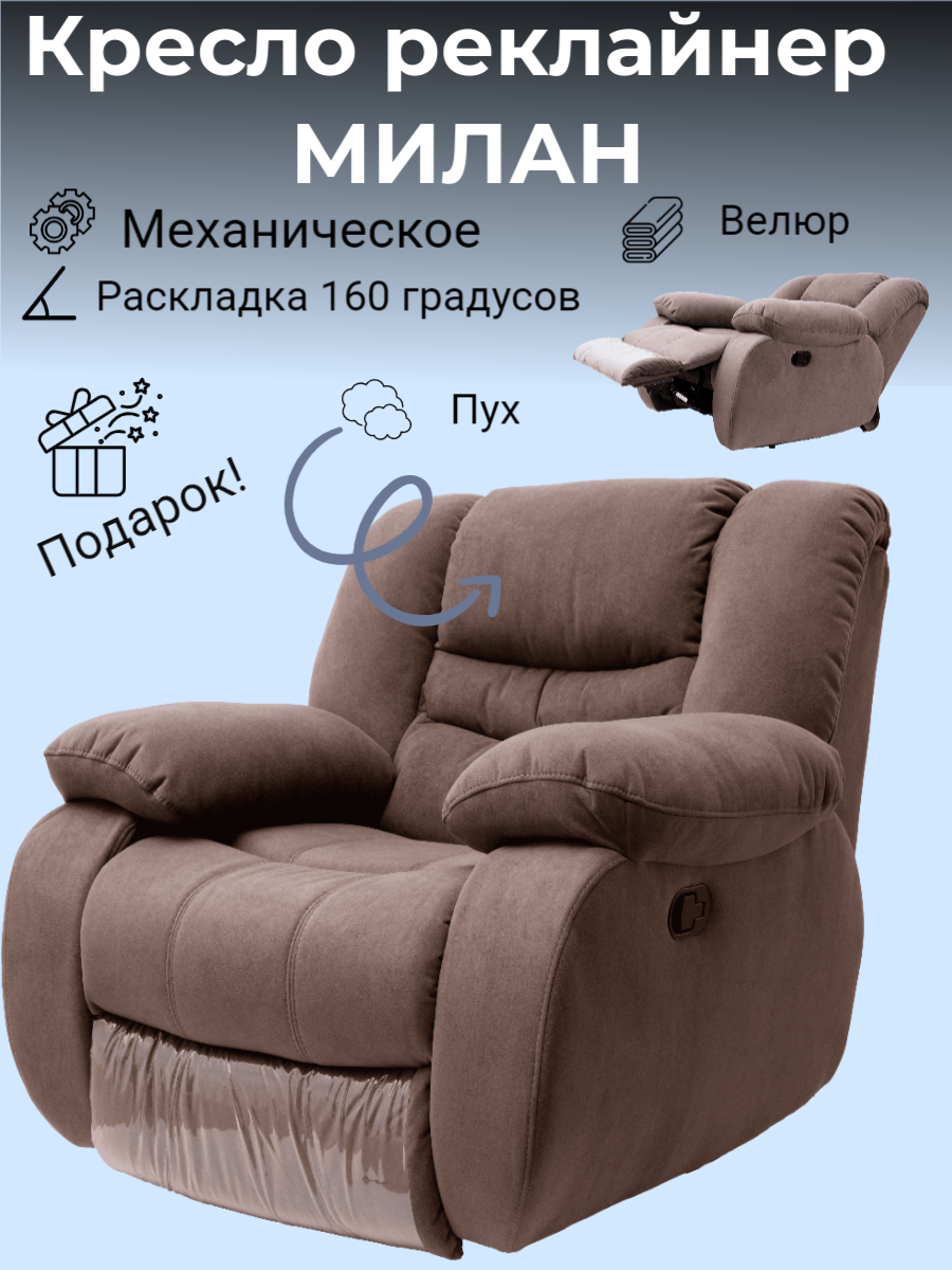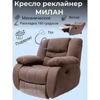 Купить Кресло реклайнер механический Милан велюр коричневый для домашнего кинотеатра, для салона красоты с доставкой по всей России. Кресло реклайнер механический Милан велюр коричневый для домашнего кинотеатра, для салона красоты: сравнение цен, характеристики, фото, актуальное наличие и цены.