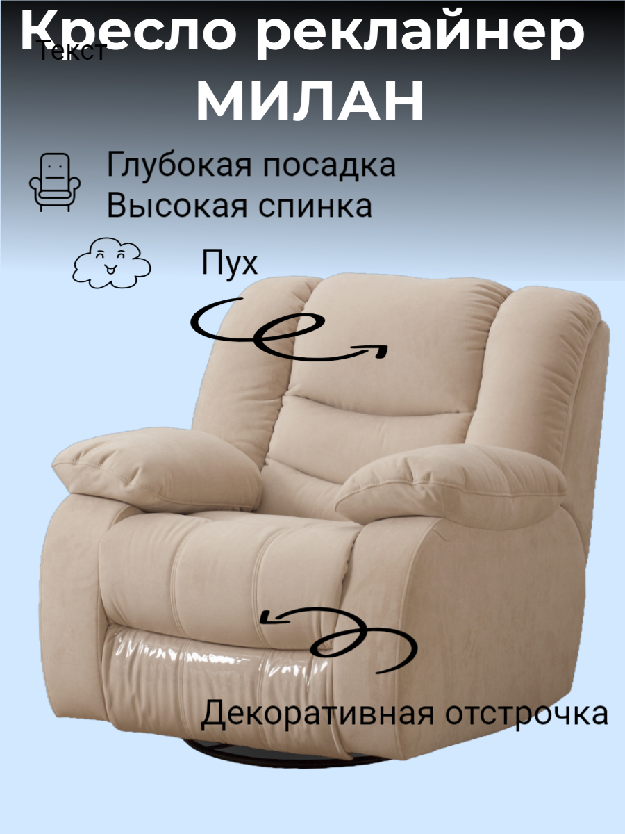 Купить Кресло реклайнер механический с качением Милан бежевое велюр с доставкой по всей России. Кресло реклайнер механический с качением Милан бежевое велюр: сравнение цен, характеристики, фото, актуальное наличие и цены.