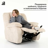 Механизм “реклайнер” европейского производства регулирует угол наклона спинки и подъема подножки. Благодаря электронному приводу механизма «реклайнер» кресло раскладывается плавно и без усилий со стороны сидящего в нем человека. При нажатии на кнопку, расположенную на боковине кресла, запускается процесс плавного и синхронного раскладывания кресла. Зафиксировать оптимально удобное положение можно отпустив кнопку.
