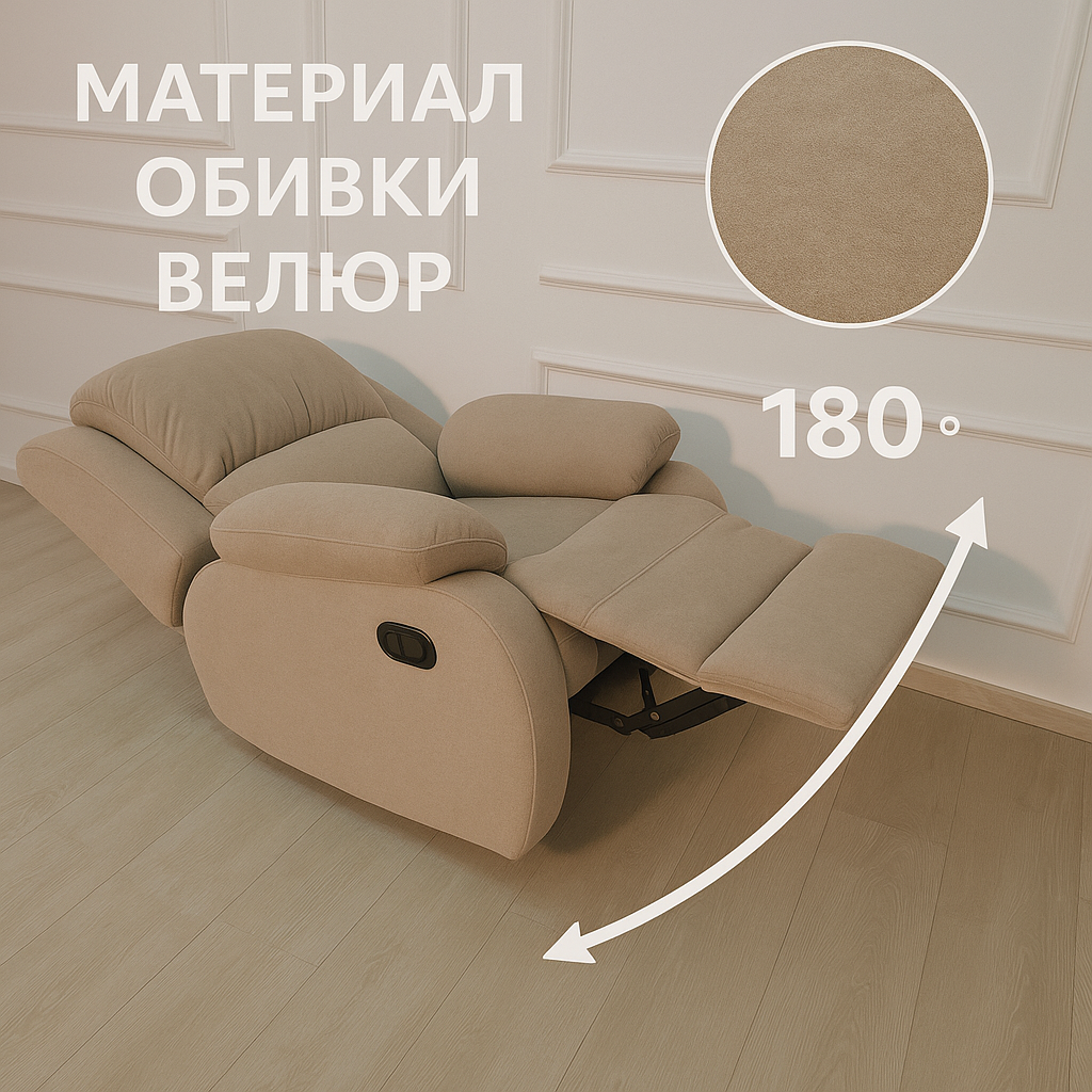 Купить Кресло-реклинер, бежевый, велюровый, с механическим управлением с доставкой по всей России. Кресло-реклинер, бежевый, велюровый, с механическим управлением: сравнение цен, характеристики, фото, актуальное наличие и цены.