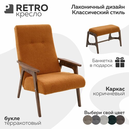 Кресло RETRO с банкеткой, для дома и дачи, букле цвет терракотовый, каркас коричневый , Мебельное бюро PEREVALOV: сравнение цен, характеристики, фото, актуальное наличие и цены.