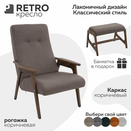Кресло RETRO с банкеткой, для дома и дачи, рогожка цвет коричневый, каркас коричневый , Мебельное бюро PEREVALOV: сравнение цен, характеристики, фото, актуальное наличие и цены.
