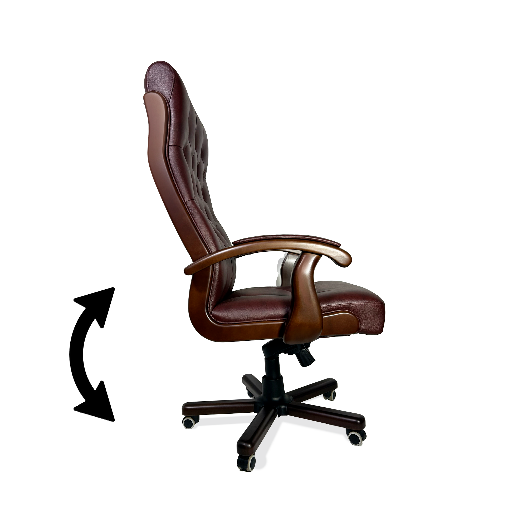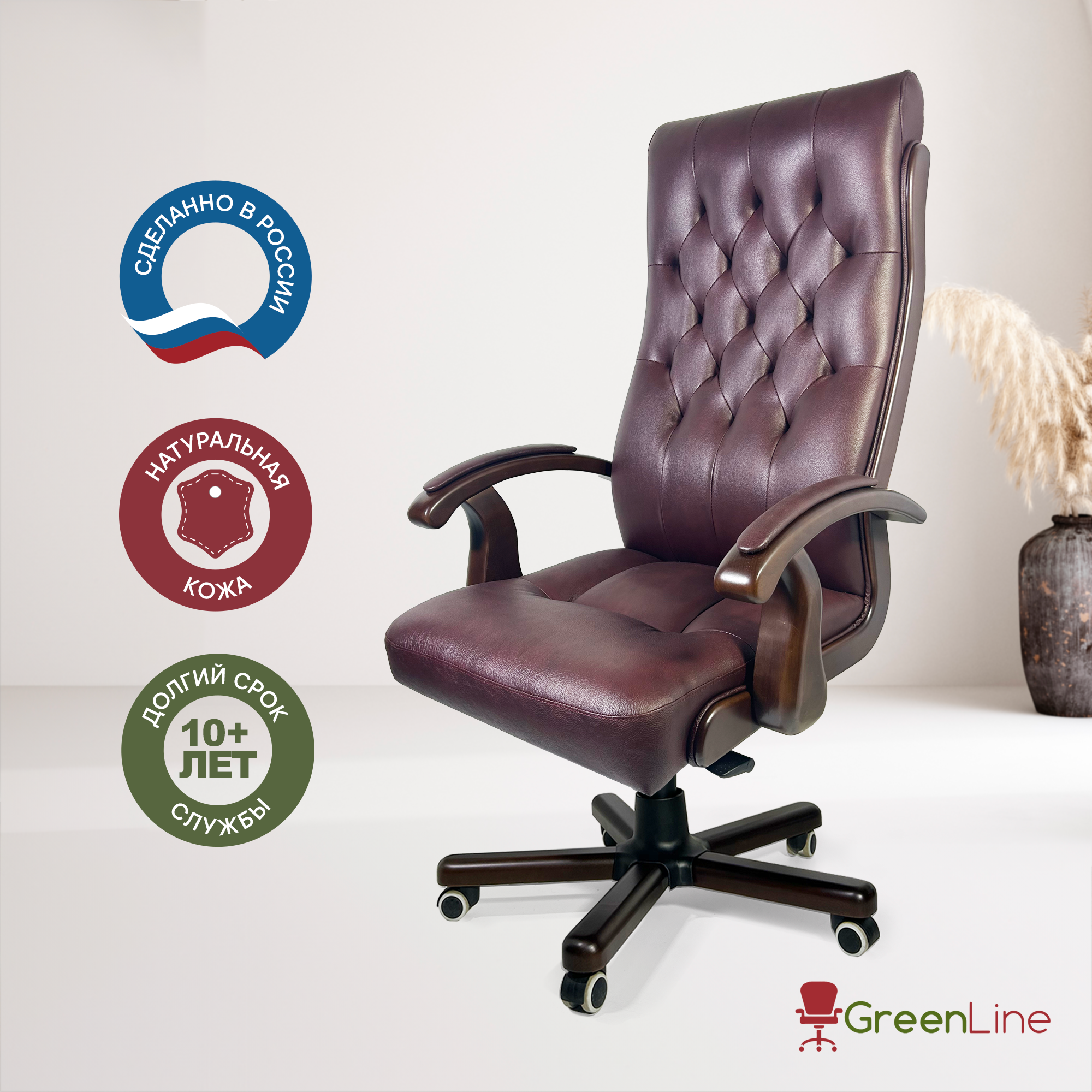 Купить Офисное кресло руководителя компьютерное Берн, мягкий подлокотник, кожаное, дерево, бордовое с доставкой по всей России.