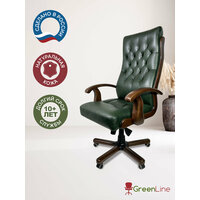 Купить Компьютерное кресло руководителя офисное Берн, кожаное, массив дерева, зеленое (Pino) с доставкой по всей России.
