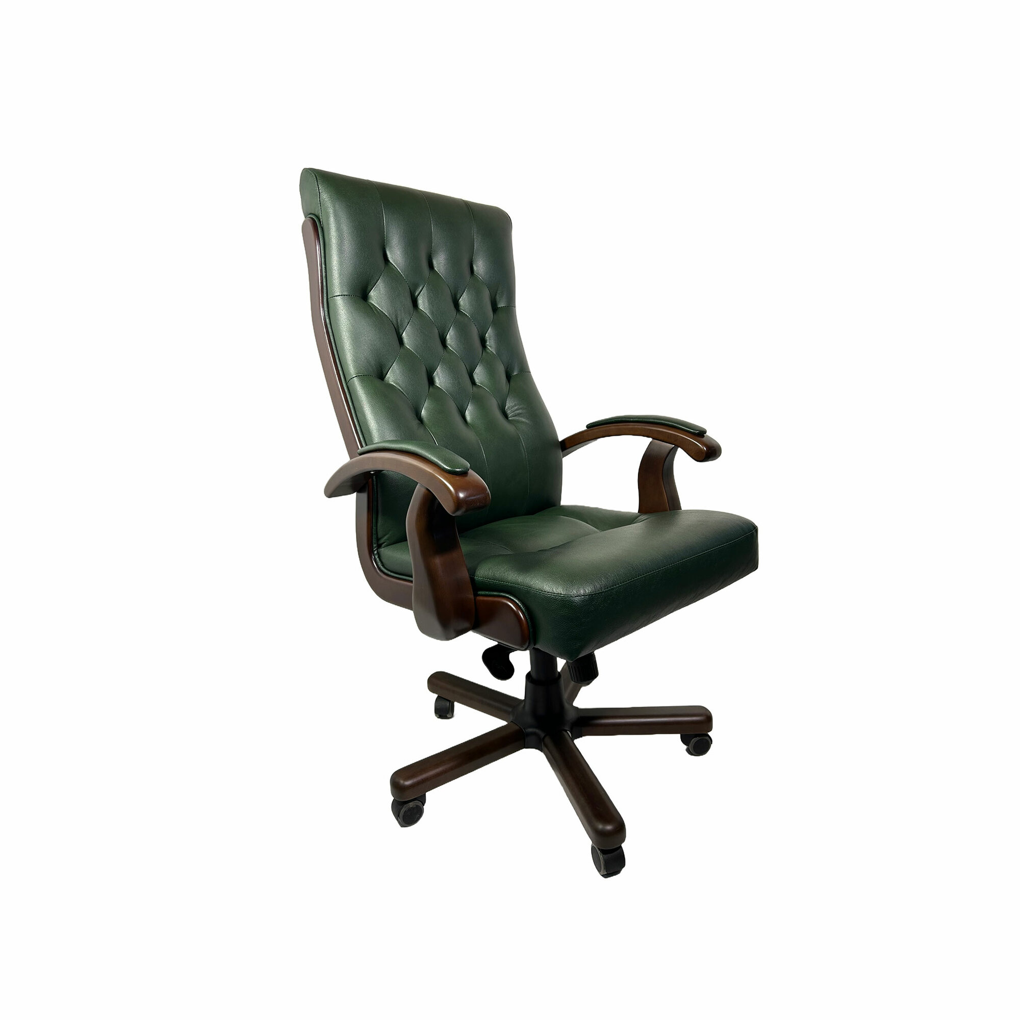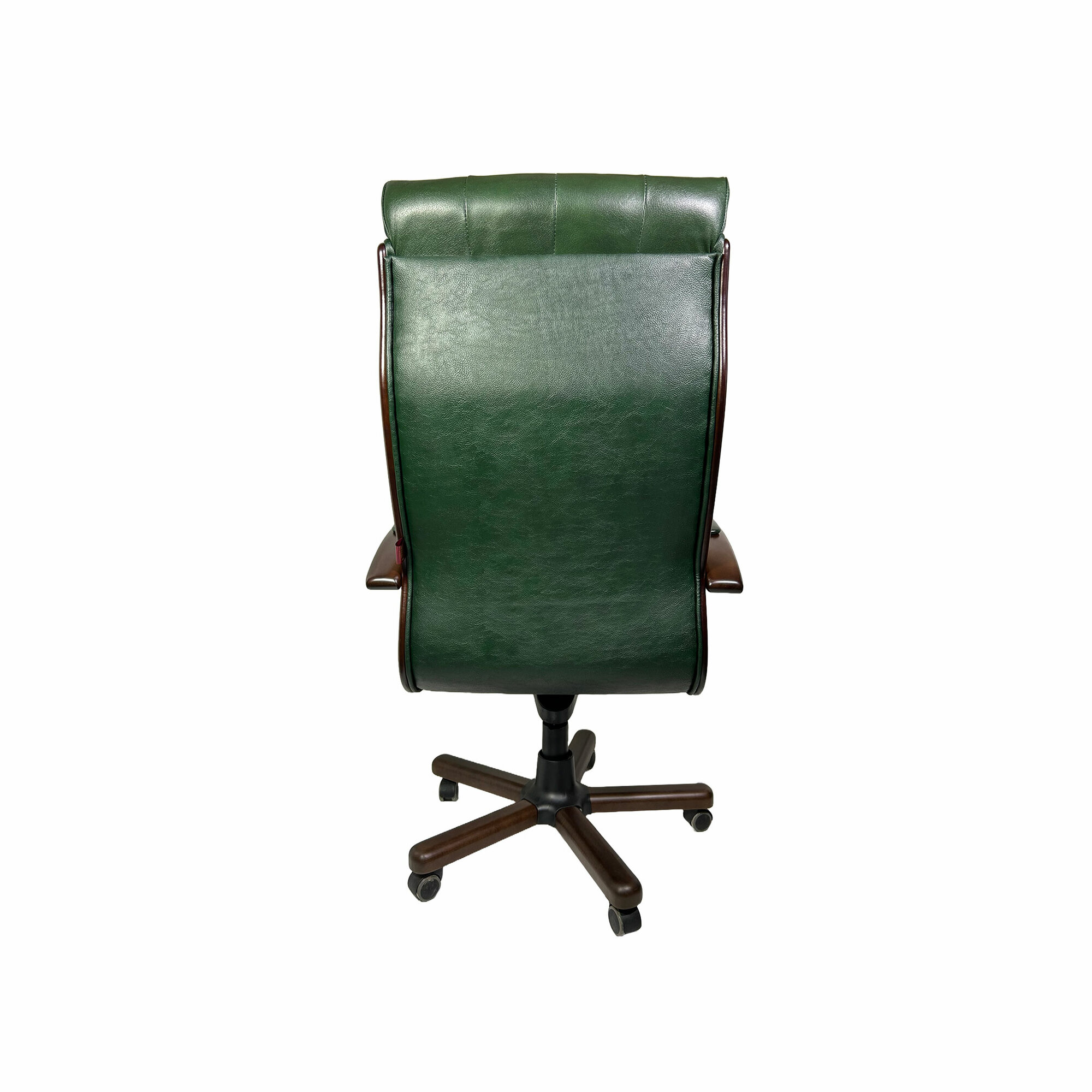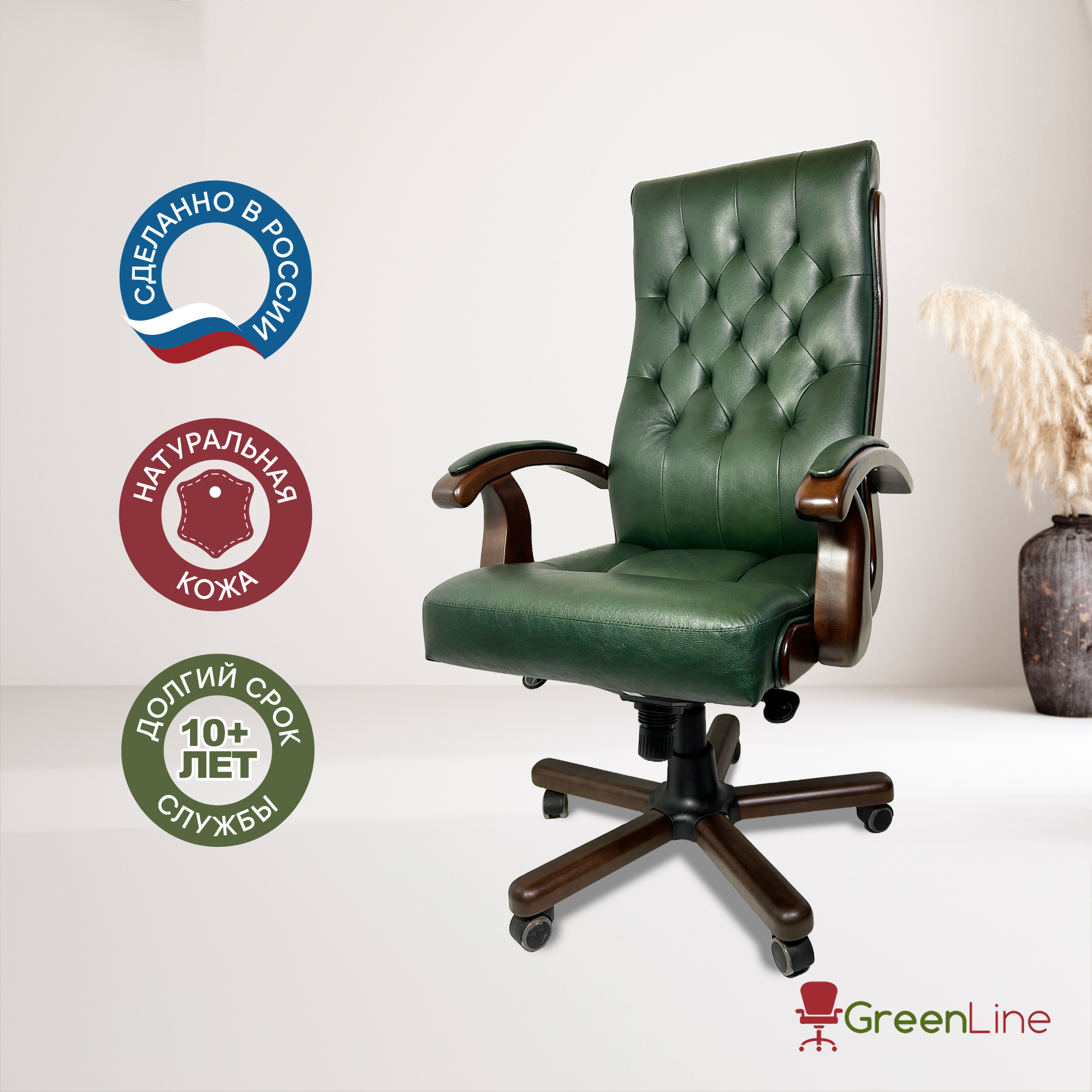 Купить Офисное кресло руководителя компьютерное Берн, мягкий подлокотник, кожаное, дерево, зеленое (Pino) с доставкой по всей России.