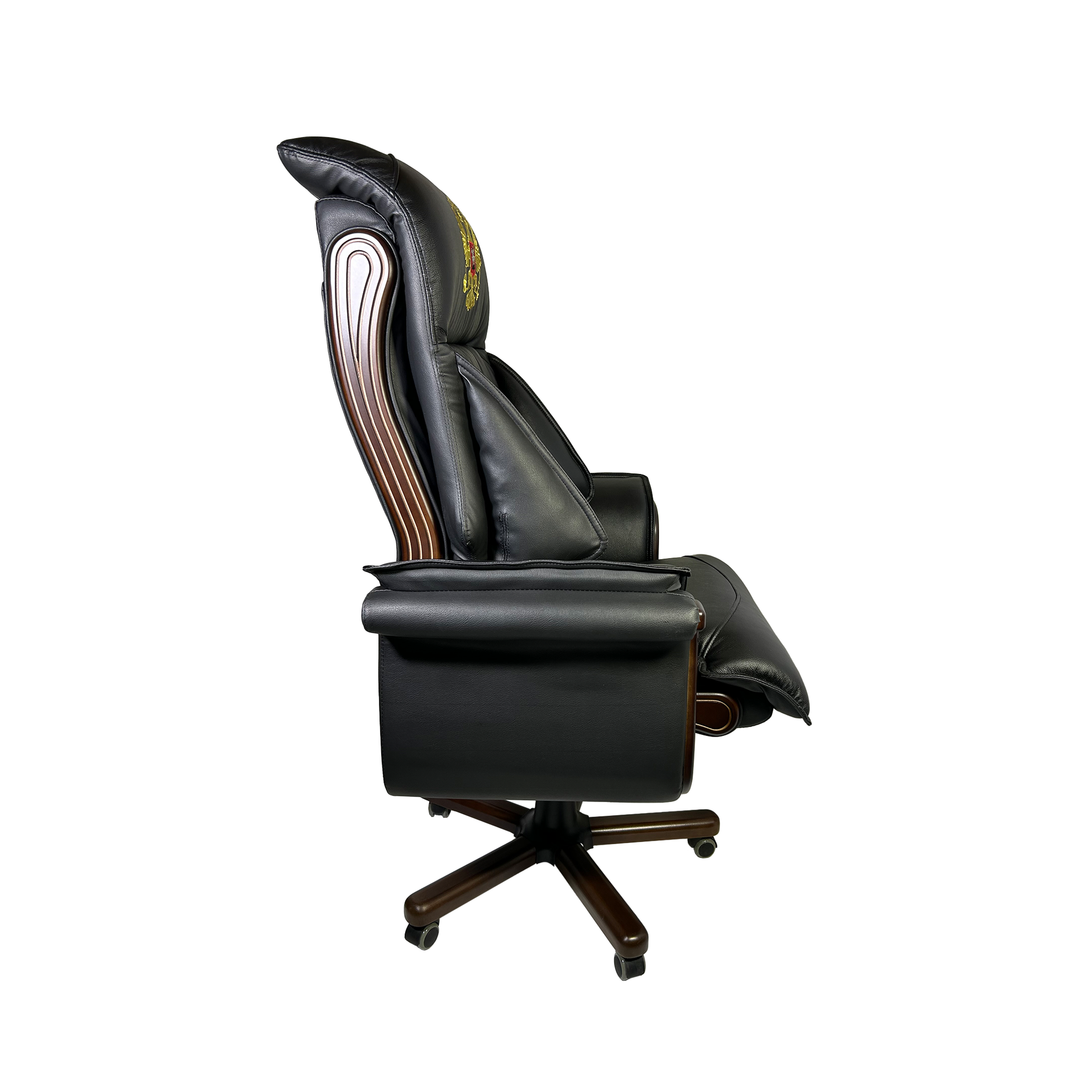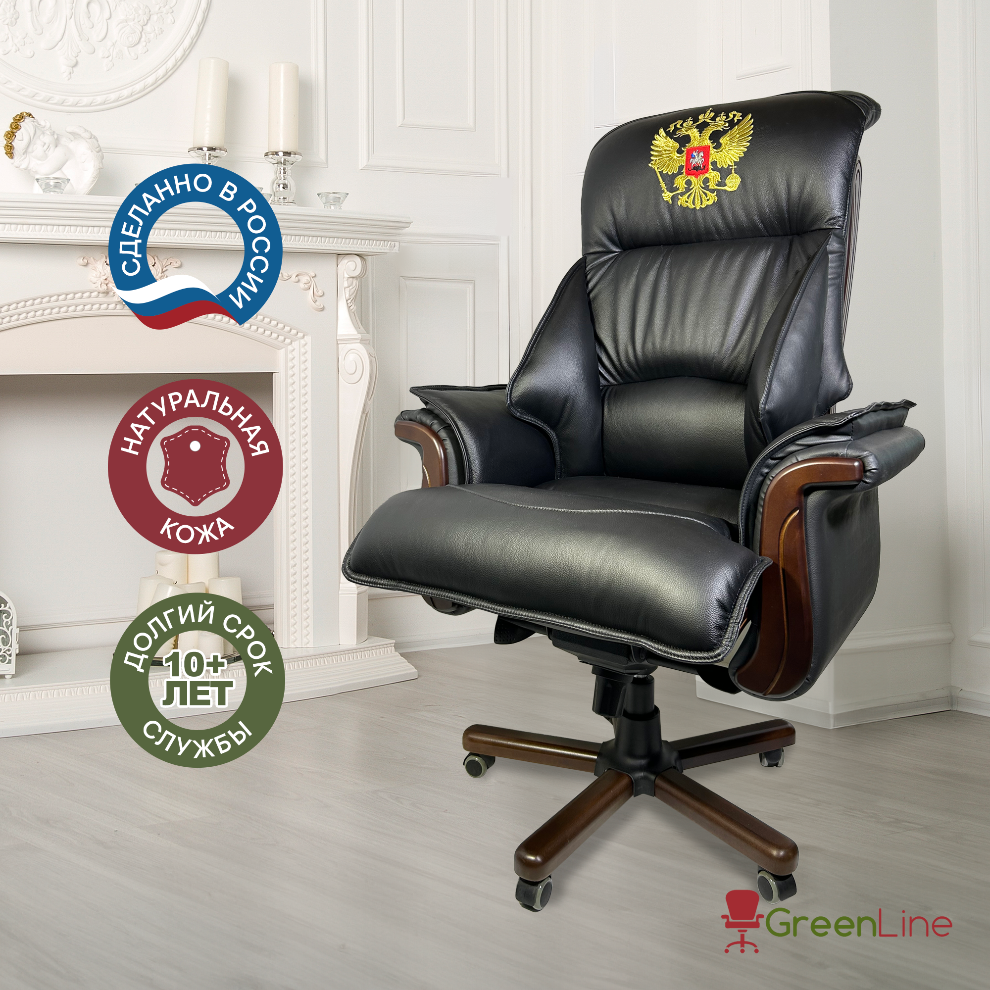 Купить Офисное кресло руководителя Давос с гербом, натуральная кожа, черное с доставкой по всей России.