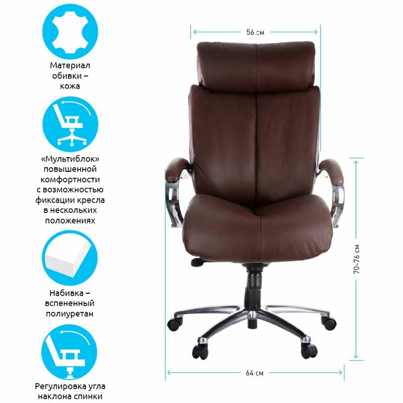 Кресло руководителя Helmi HL-ES03 «Invincible» повыш. прочн, кожа коричн, мультибл, хром, до 250кг: сравнение цен, характеристики, фото, актуальное наличие и цены.