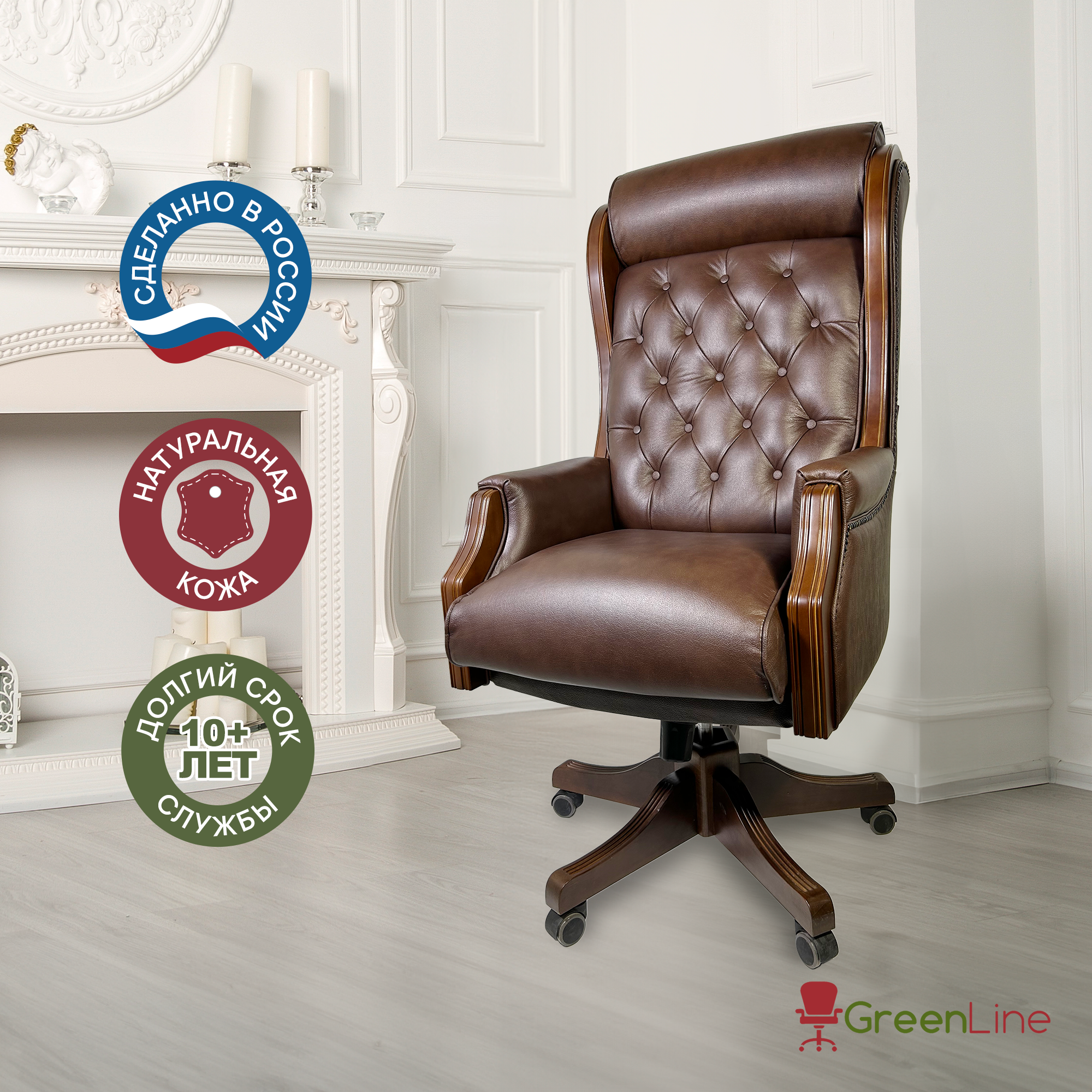Офисное кресло руководителя Князь (Ришар), натуральная кожа, массив дерева, коричневое (Bruno): сравнение цен, характеристики, фото, актуальное наличие и цены.